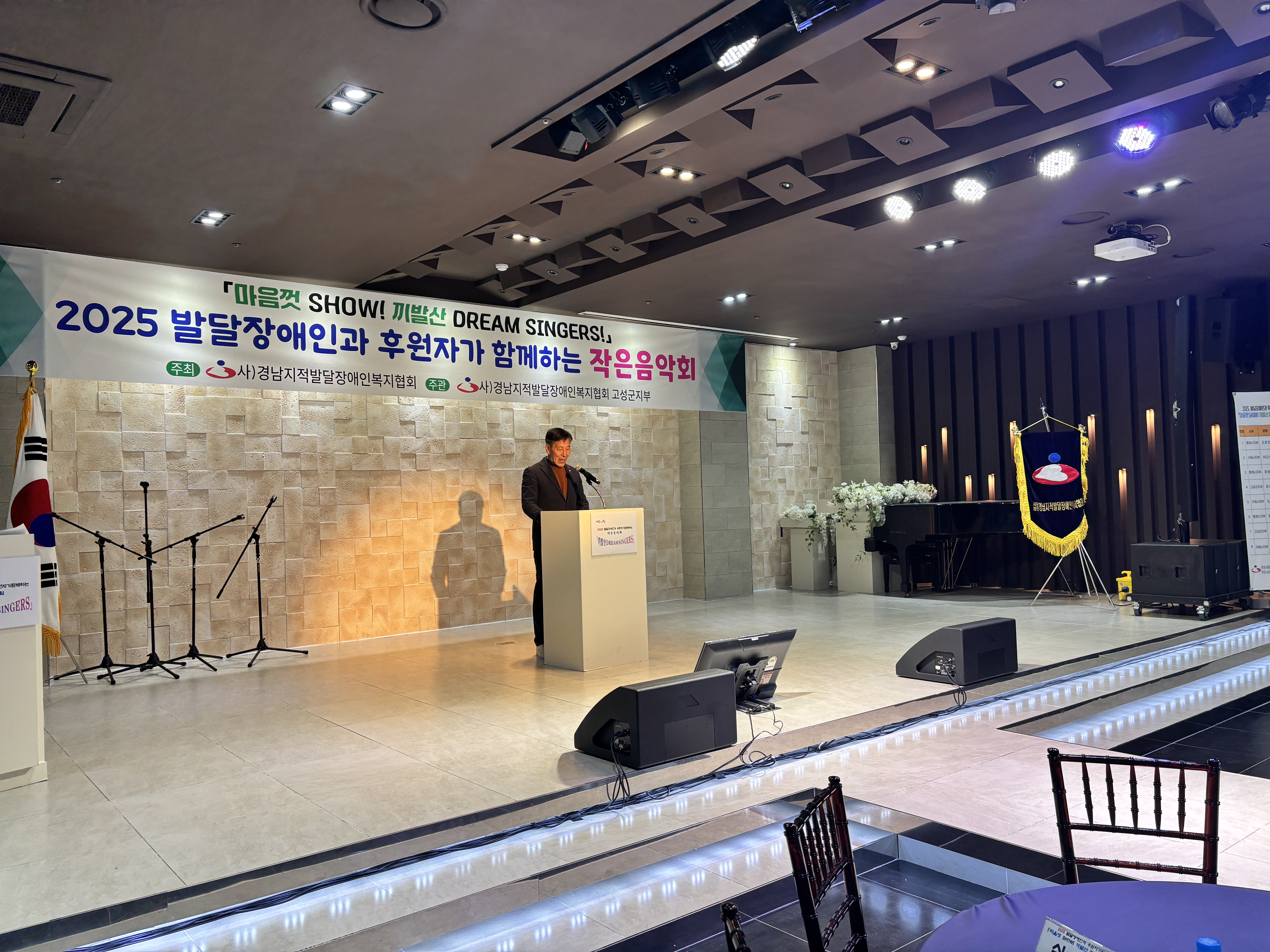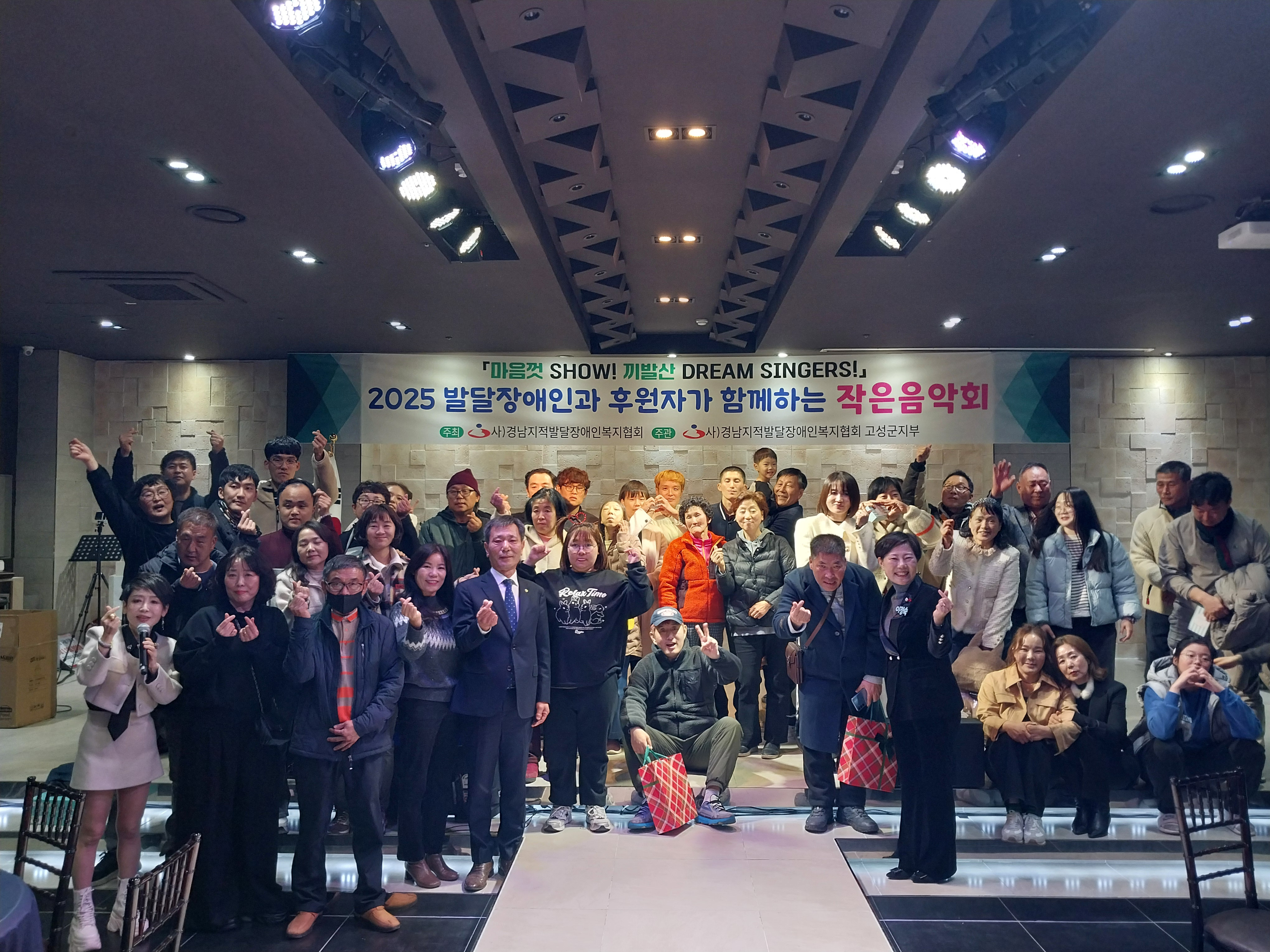 사)경남지적발달장애인복지협회는 한해 동안 후원해주시고 활동해주신 후원자 분들과 지적발달장애인, 활동보조사 , 공공후견, 각 지부, 운영위원님, 장애인단체 등 고마우신 분들을 모시고 "마음껏 SHOW! 끼발산 DREAM SINGERS" 2025발달장애인과 후원자가 함께하는 작은 음악회를 개최 하였습니다.