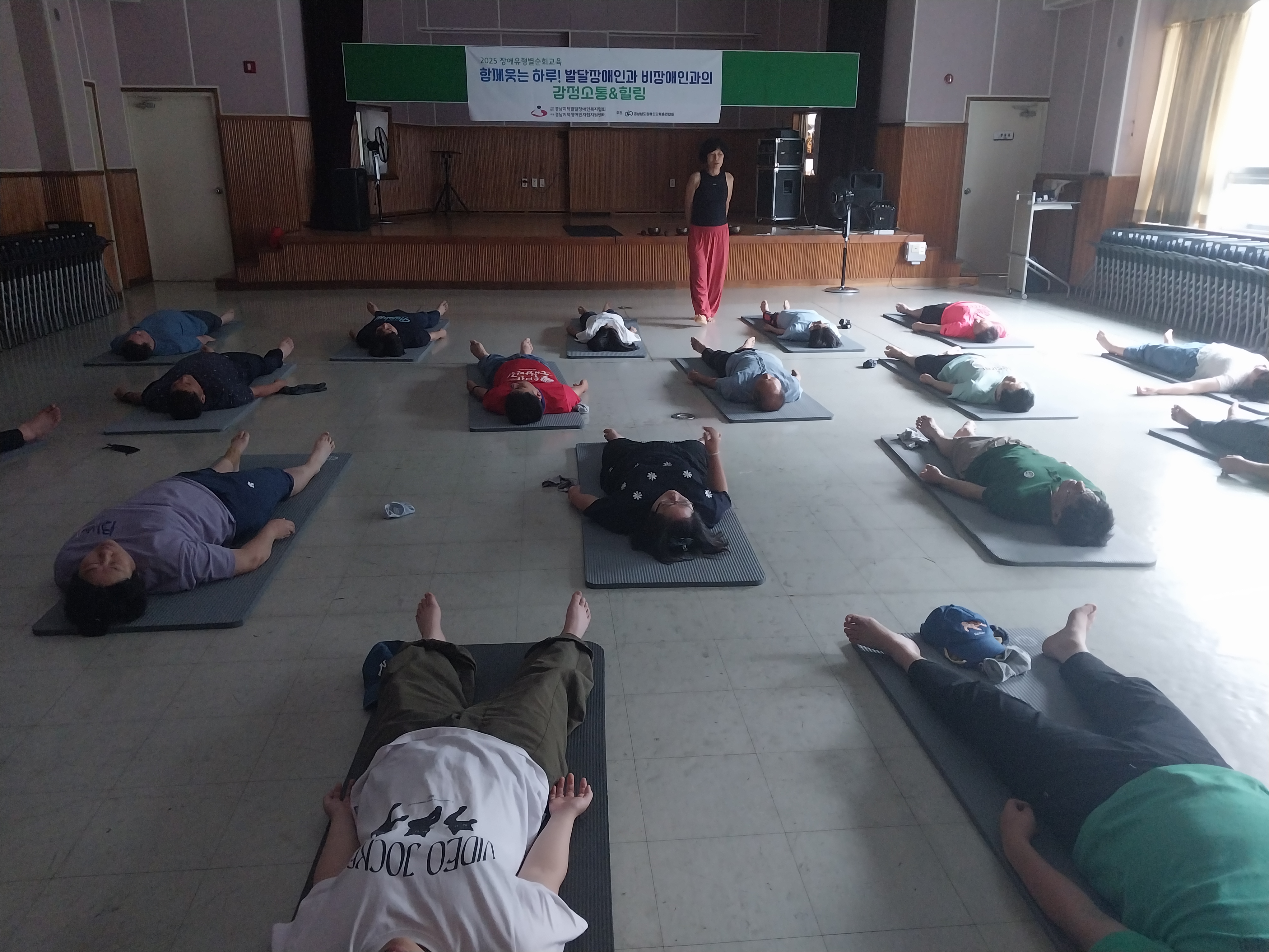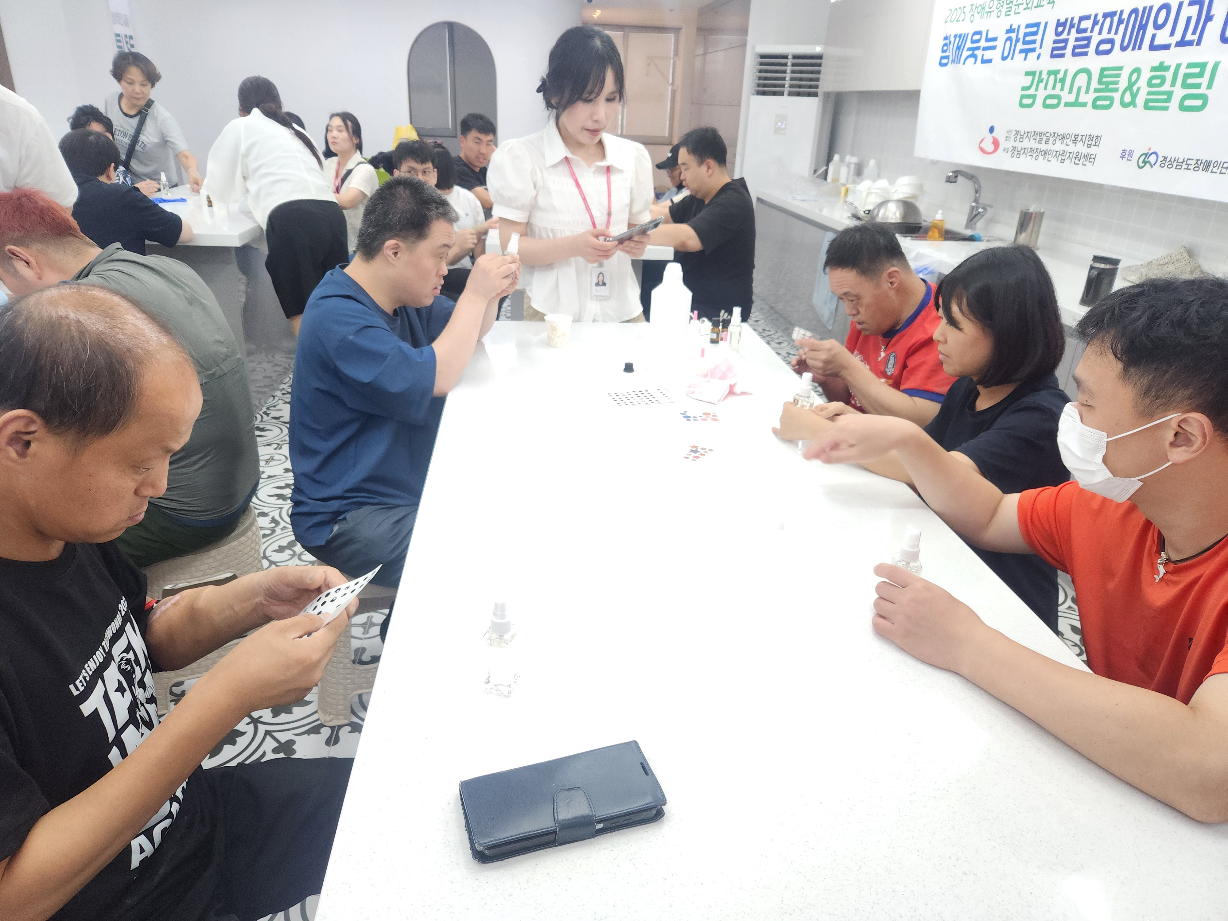 경남지적발달장애인복지협회는 경남장총의 지원을 받아 발달장애인과 비장애인이 함께하는 감정소통&힐링 프로그램을 진행하였습니다.