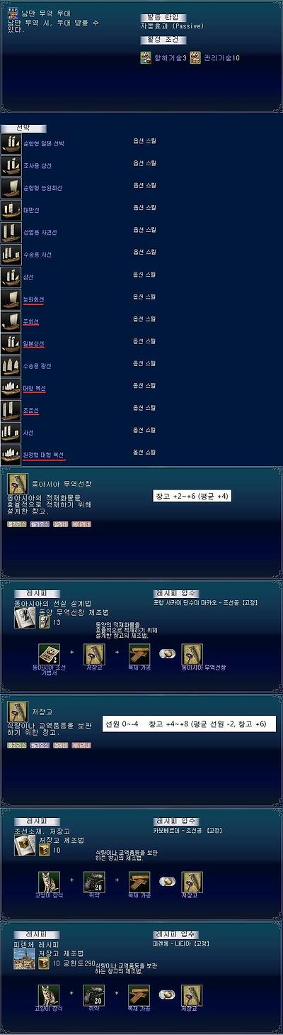 저 배 목록중에서 강화를 할때 동아시아 무역선창이랑 저장고를 같이 넣으시면 남만무역우대가 달립니다.