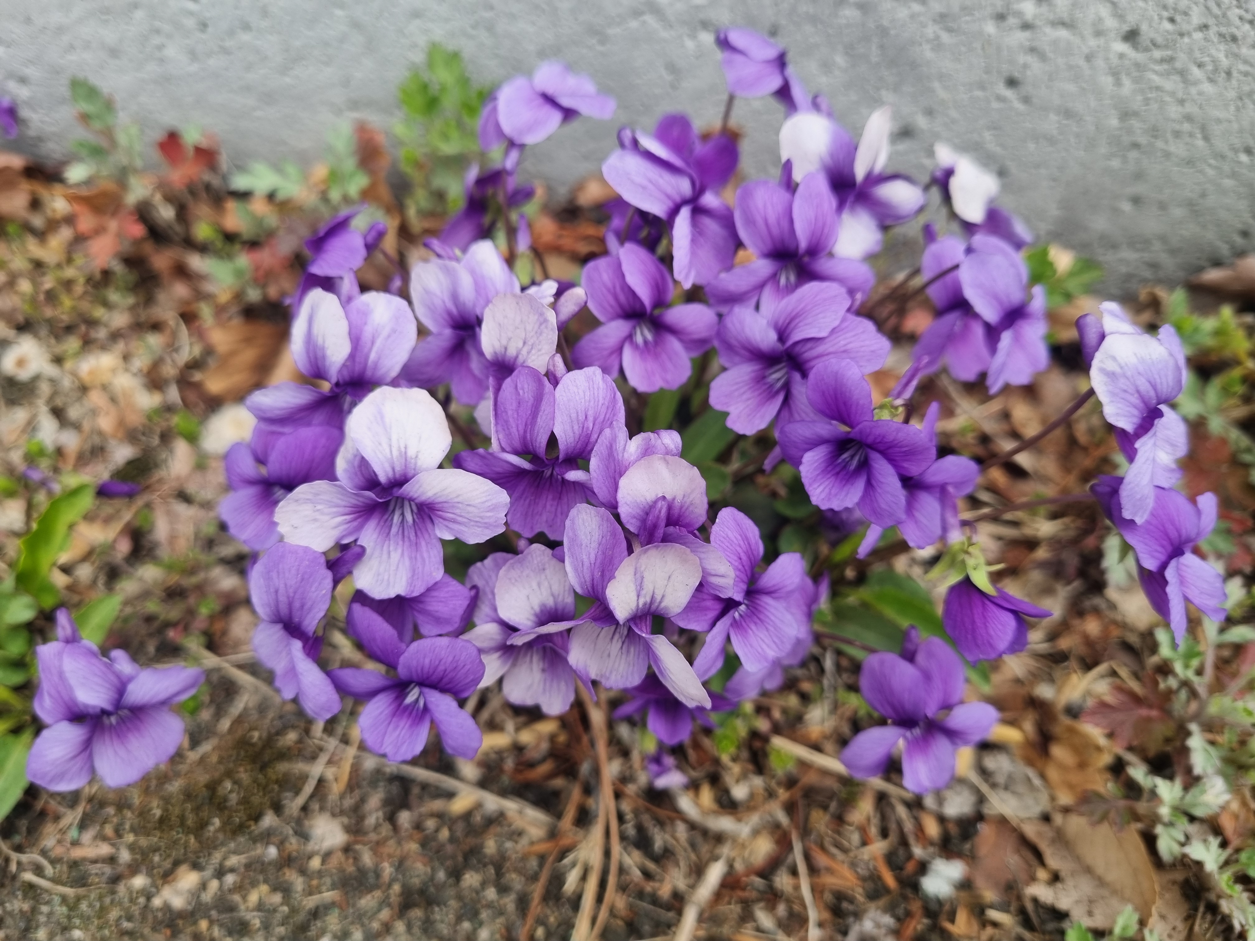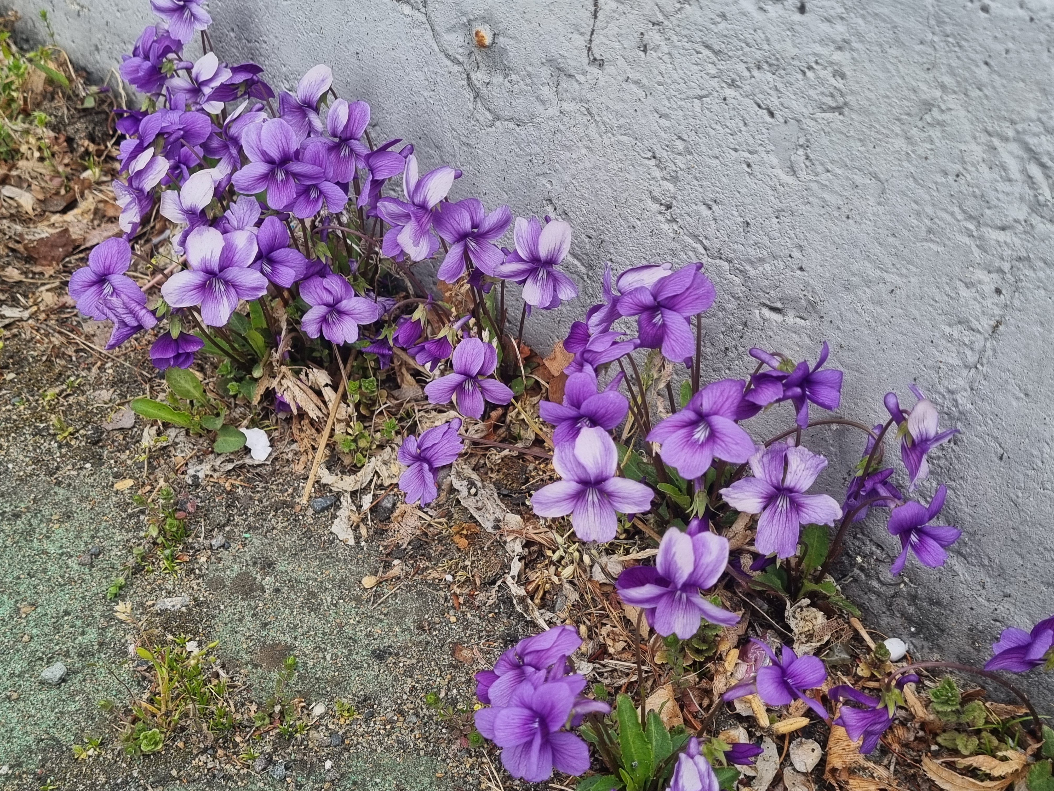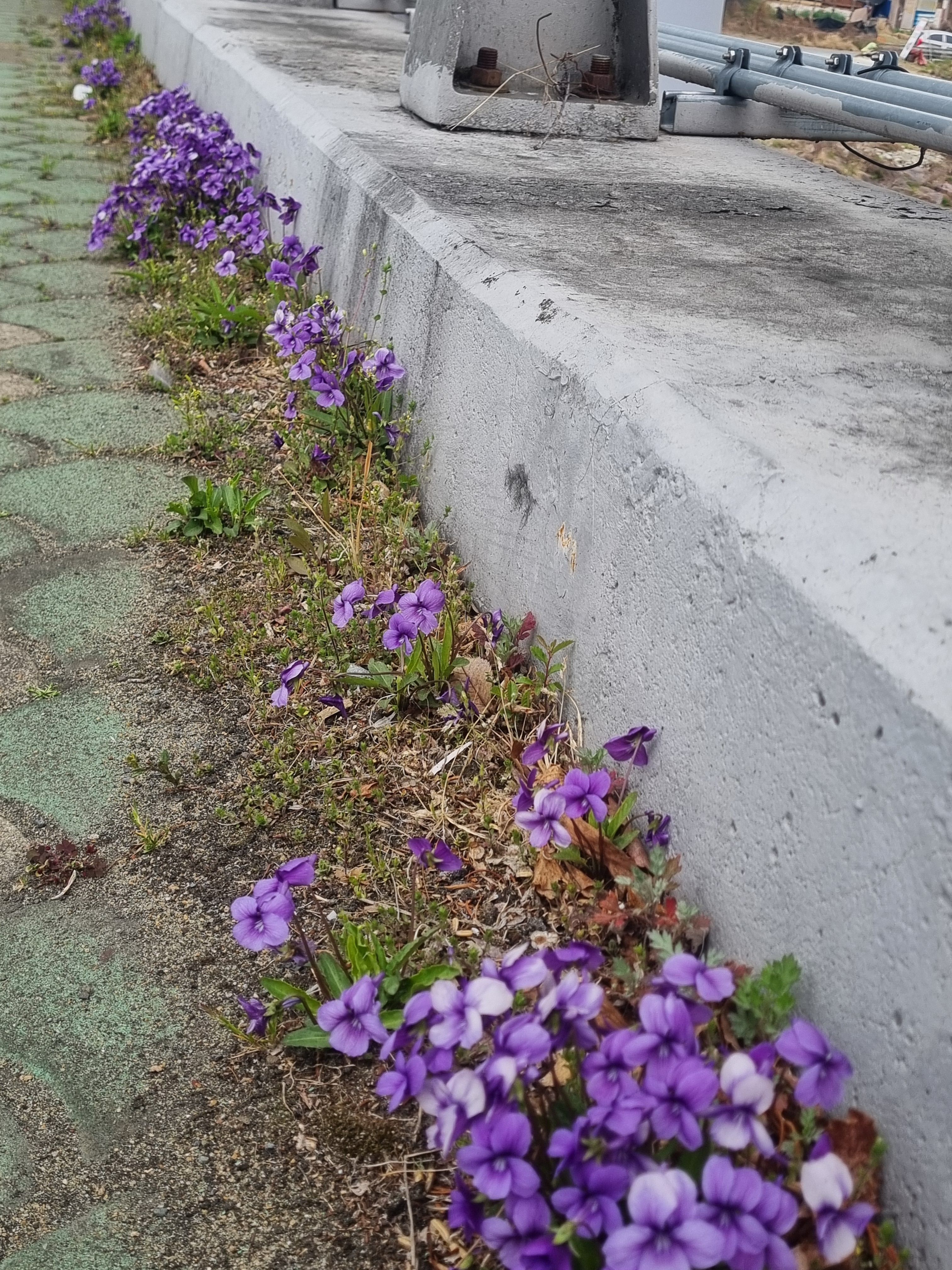 보라색 제비꽃이 낮게. 작으면서 예쁜 얼굴