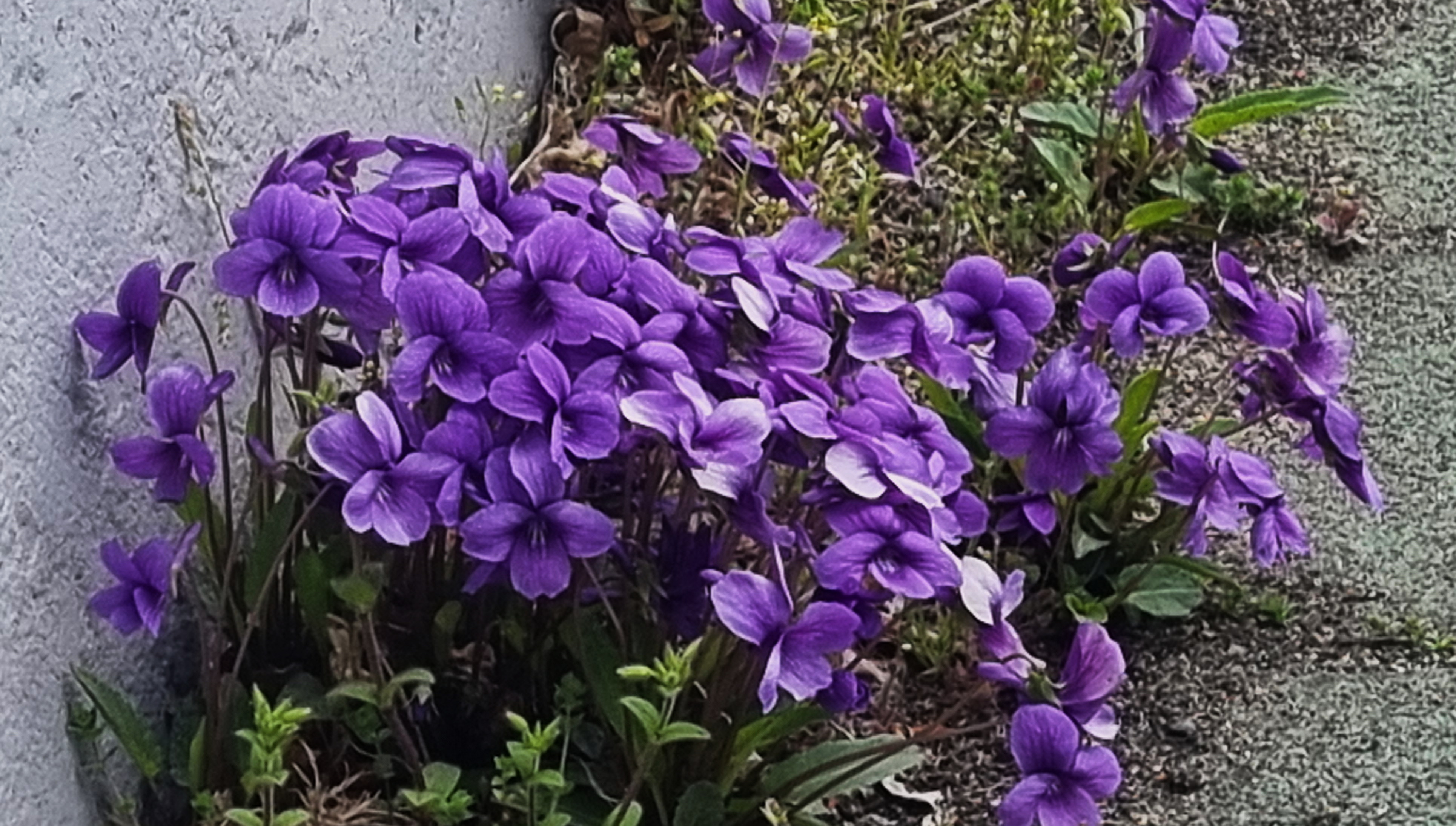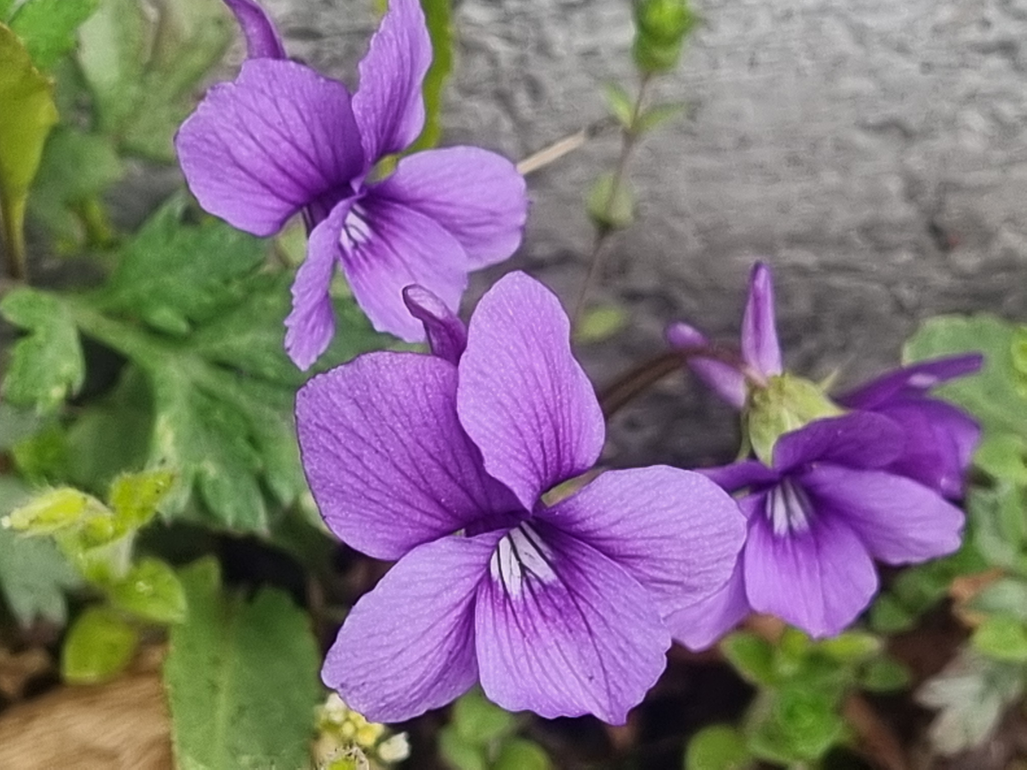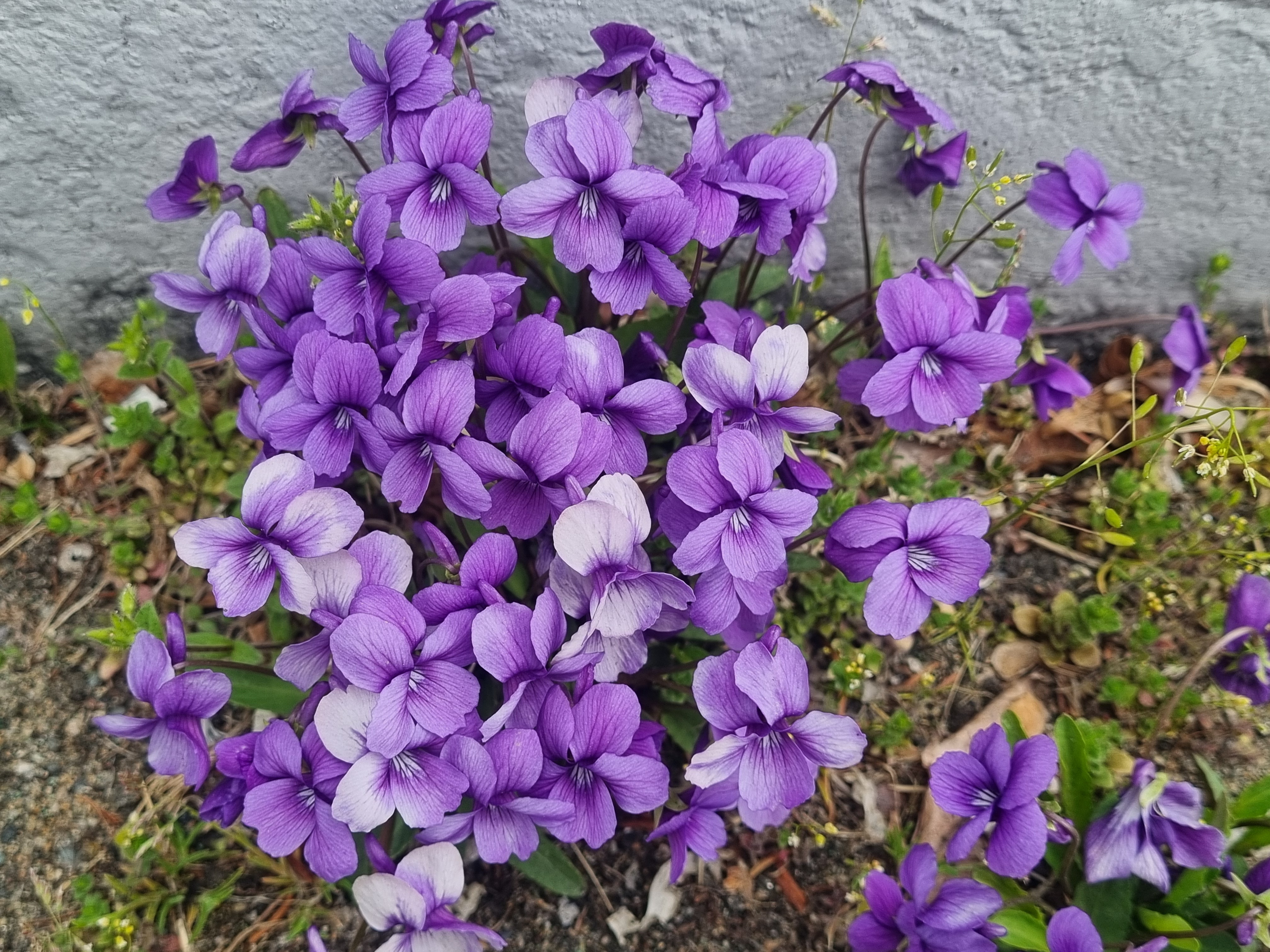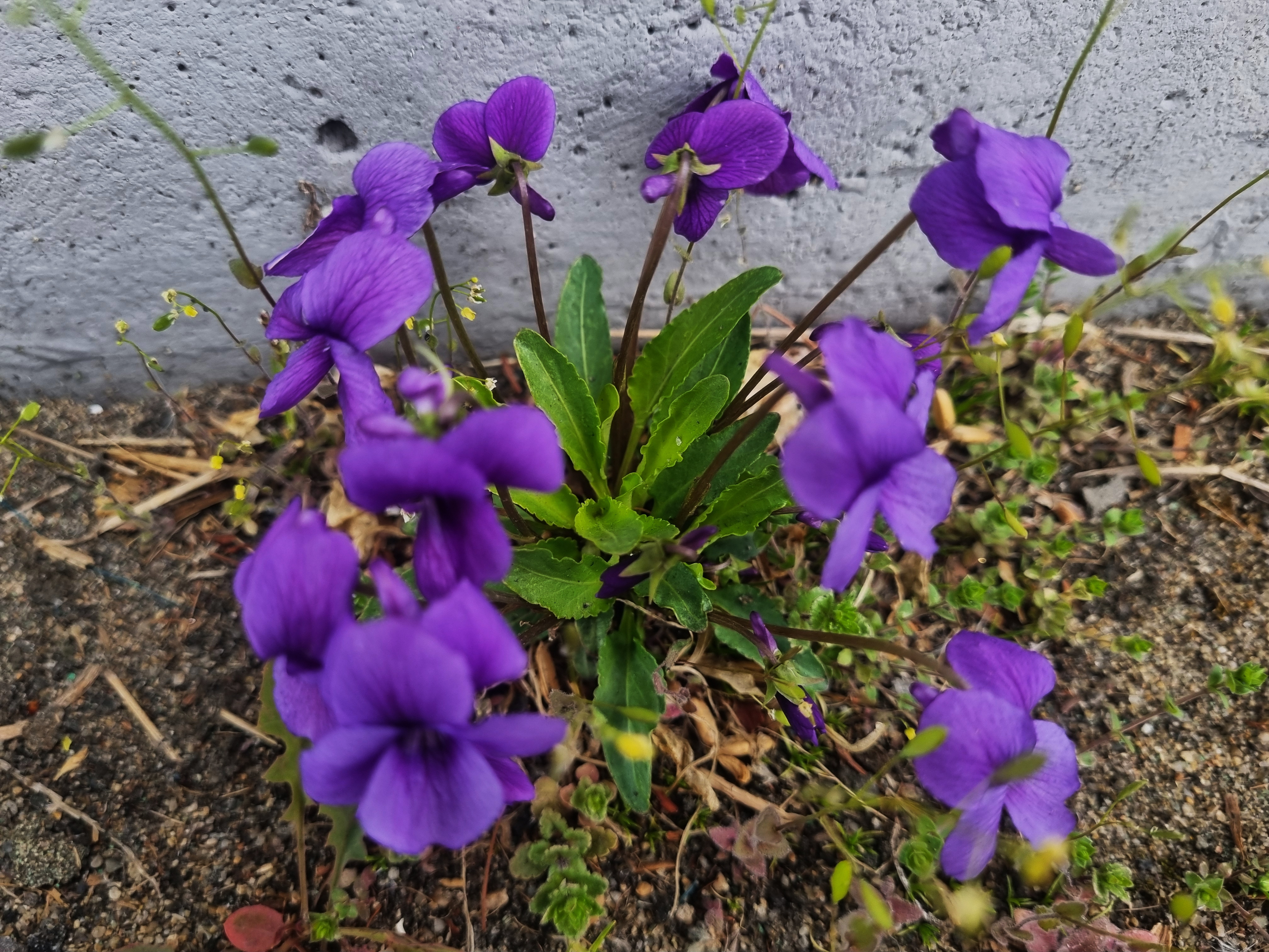 보라색 제비꽃이 낮게. 작으면서 예쁜 얼굴