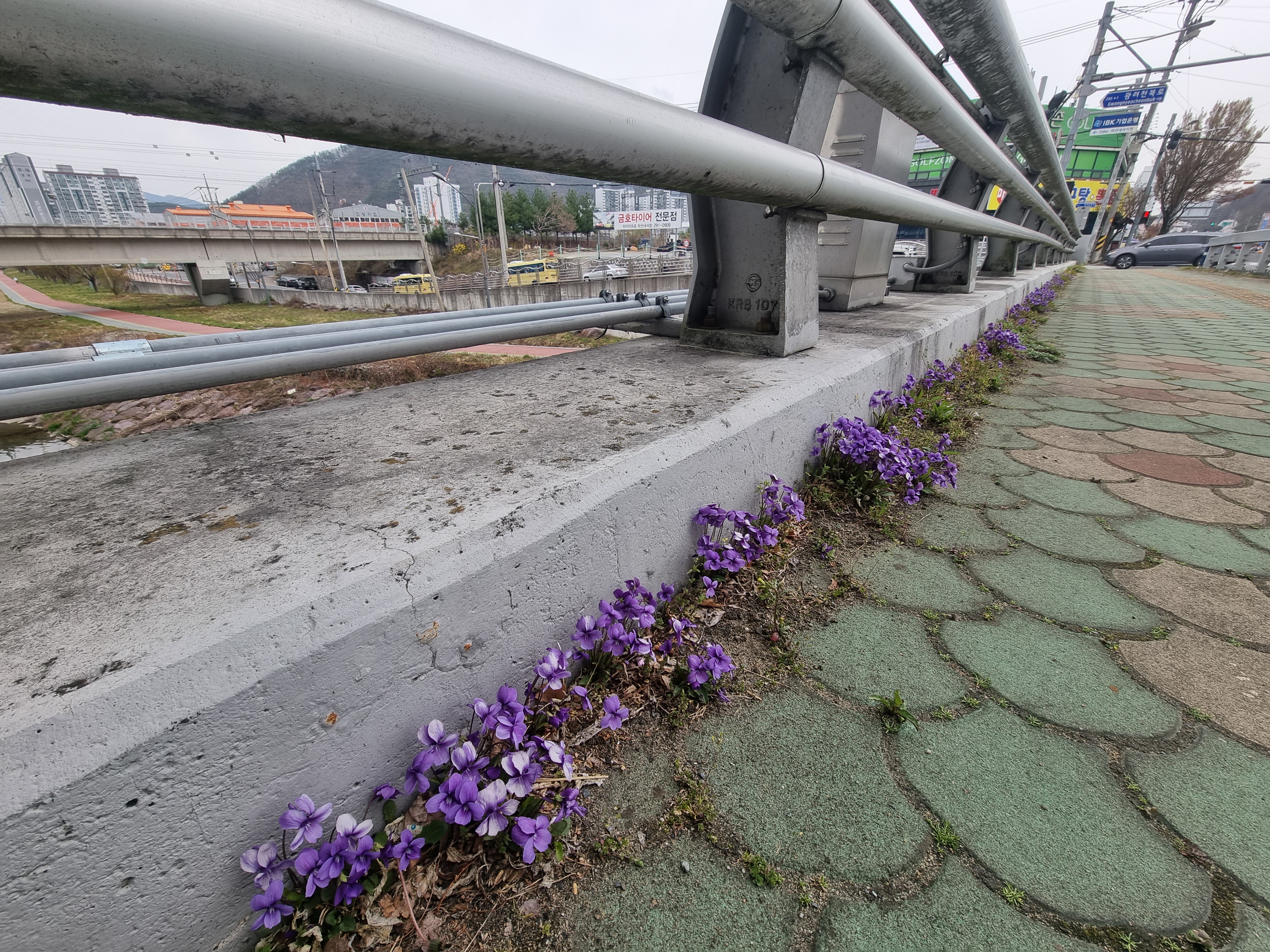 보라색 제비꽃 낮게 작게 예쁘게 피어