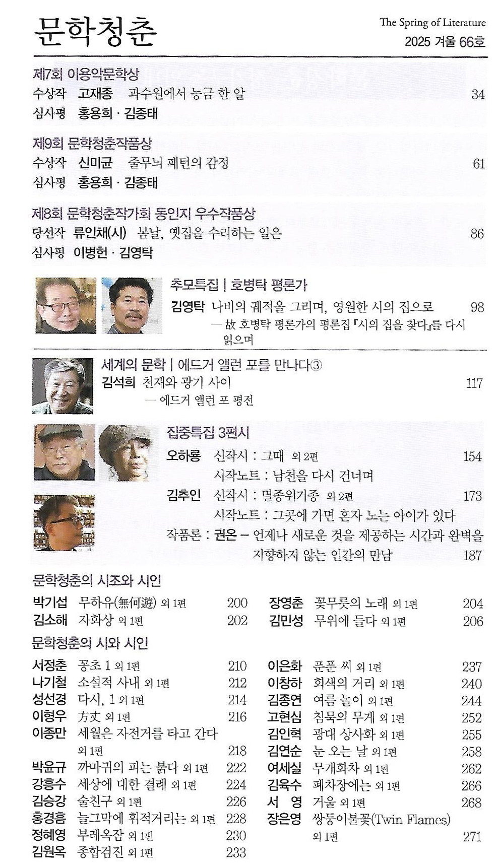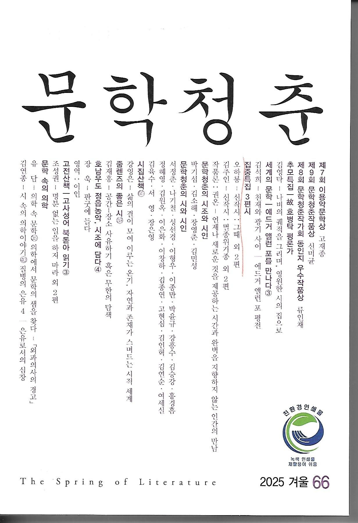 2025년 겨울, 66호를 문학청춘에서 펴냈다.