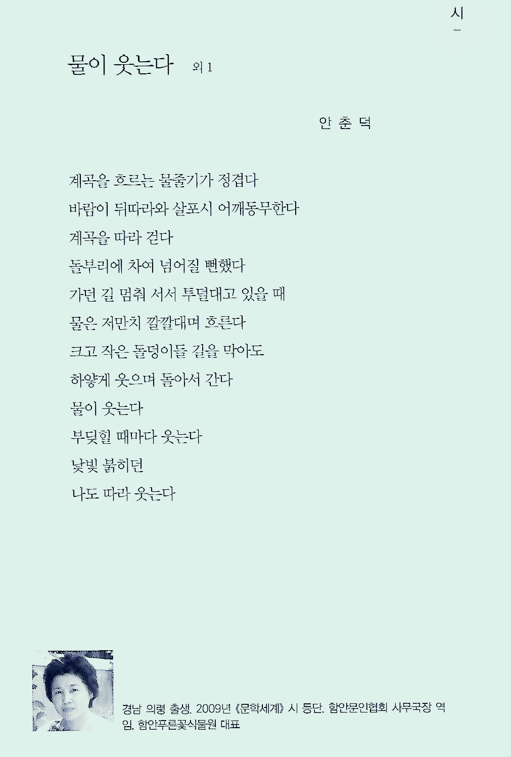 * 수록 작품 / 안춘덕 시 물이 웃는다