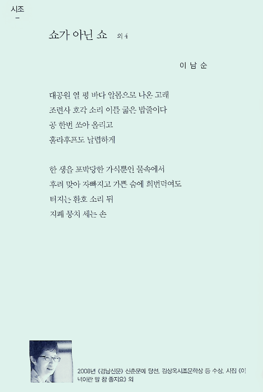 * 수록 작품 / 이남순 시조 쇼가 아닌 쇼