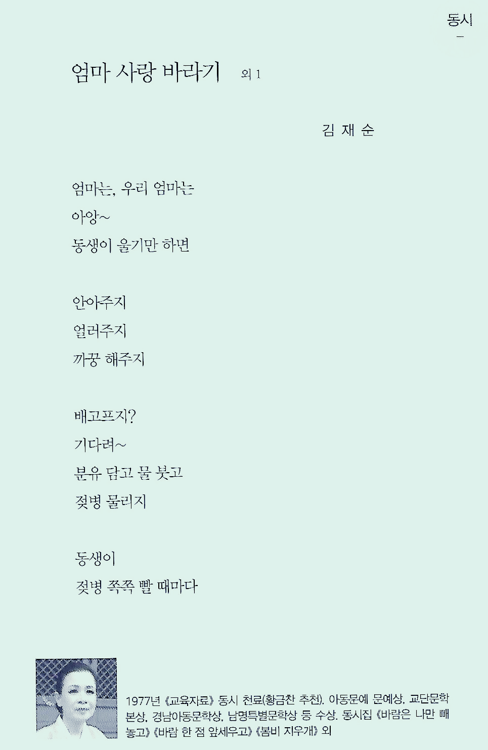 * 수록 작품 / 김재순 동시 엄마 사랑 바라기