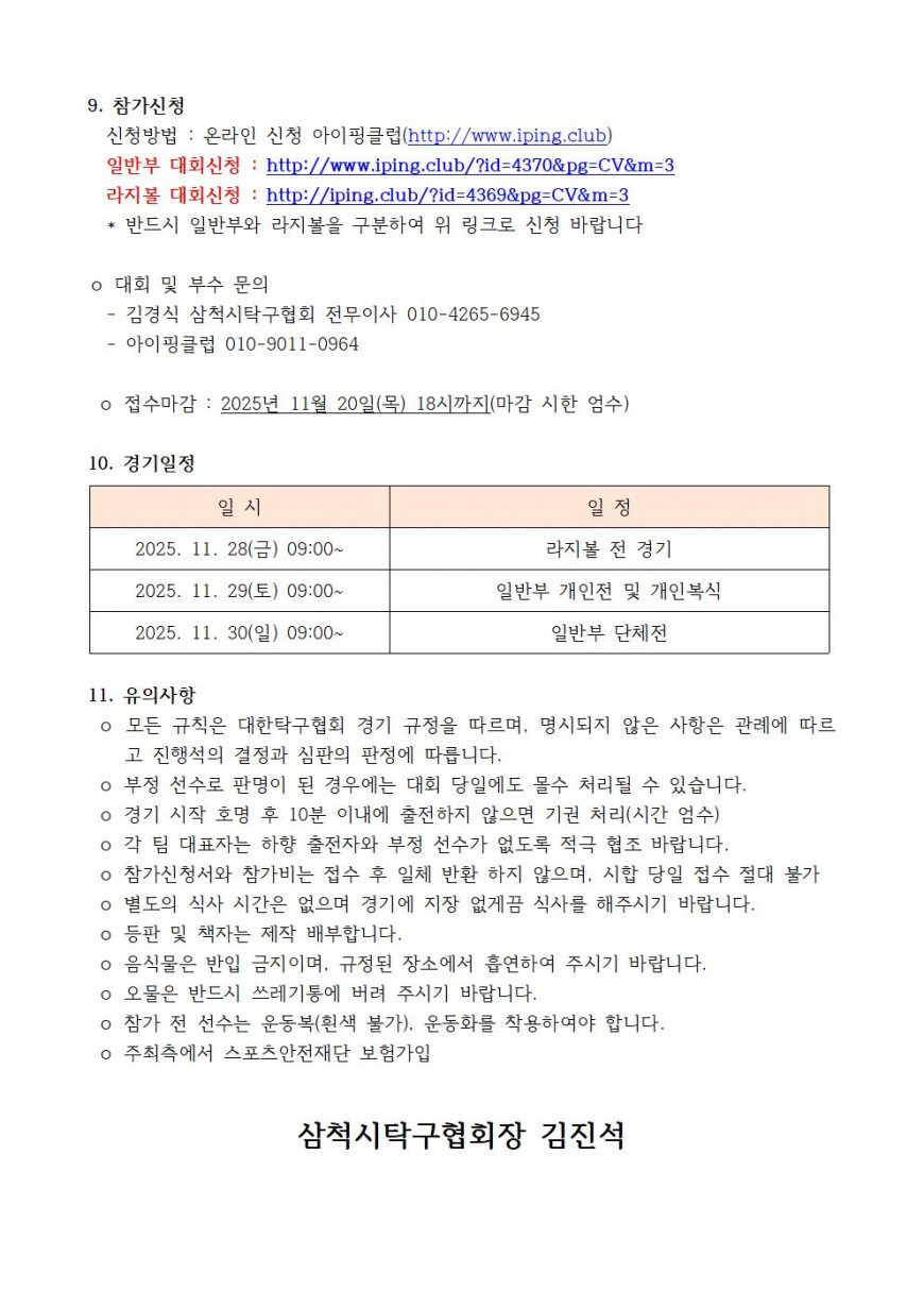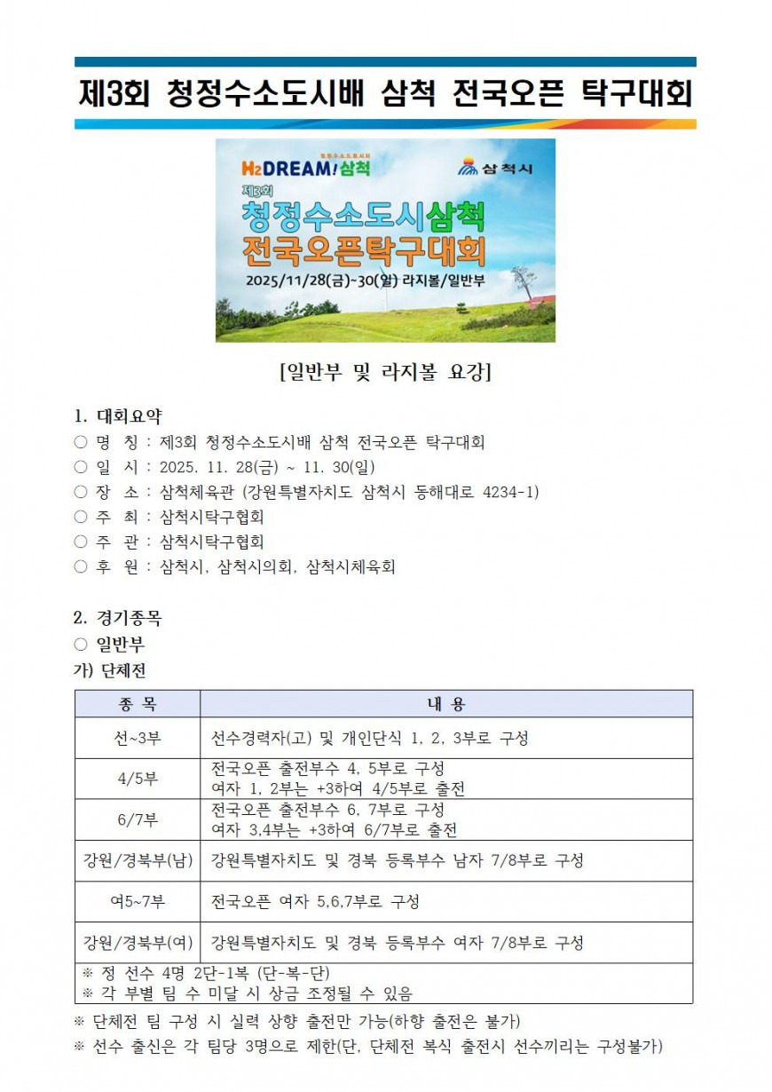 일반볼 바로가기: 제3회 청정수소도시배 삼척 전국오픈탁구대회 http://iping.club/?id=4370&pg=CV&m=3