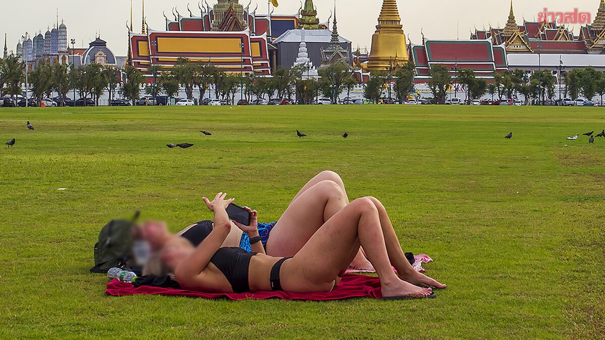 왕실 관련 대규모 행사가 열리는 장소로도 유명한 방콕 왕궁 앞 광장 '싸남루엉(Sanam Luang)'에서 외국인 여성이 비키니 차림으로 일광욕을 하는 사진이 인터넷에 공개되면서 비판의 소리가 쏟아지고 있다.
