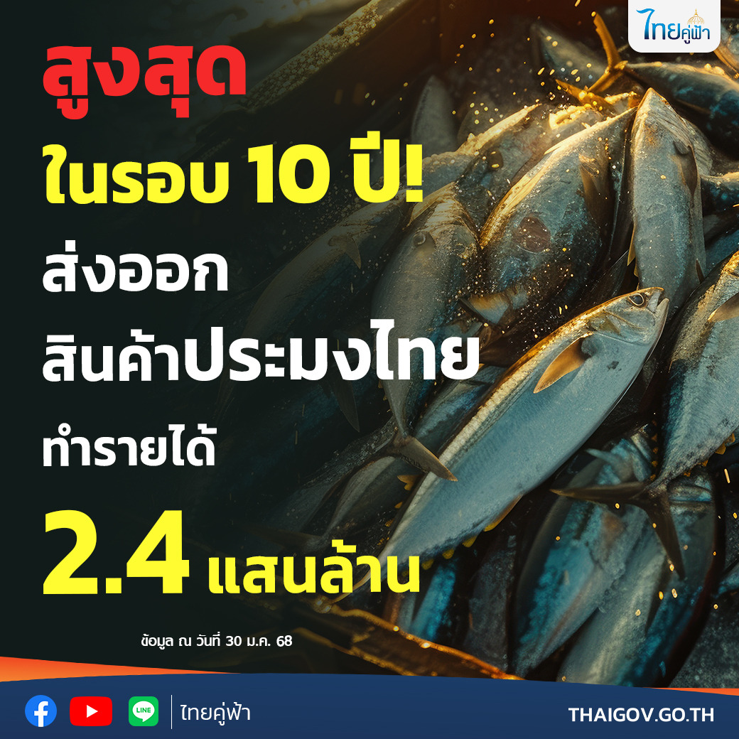 2024년(1월~12월) 태국의 수산물 수출 총액은 70억8,000만 달러(약 2,400억 바트)에 달해 지난 10년간 최고치를 기록했다.