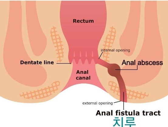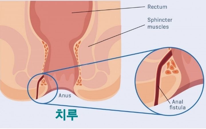 치루는 항문 주변의 만성적인 농양이나 항문선의 염증으로 시작하여 고름이 배출되고 나면 항문선의 안쪽과 항문 바깥쪽 피부 사이에 터널이 생겨 바깥쪽 구멍을 통해 분비물이 나오는 현상을 말합니다.