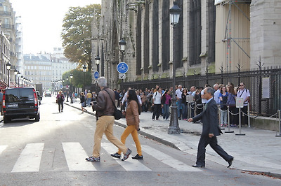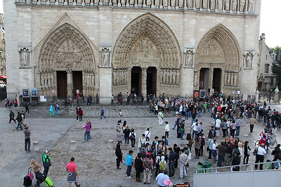 오전부터 노트르담 성당앞은 구경꾼들로 분주하다. 제일 우측부터 이어져있는 줄이 입장하기 위한 줄이다.
