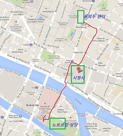 퐁피두 센터에서 시청사를 거쳐 시테 섬에 있는 노트르담 성당까지 걸은 길은