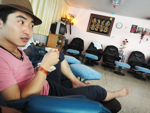 멀리서 보면 25바트처럼 보이는데 당연히 말도 안 되는 가격이다. 잘 보면 점이 있다. 2.5바트 아침을 얼렁뚱땅 먹고 피로를 풀기 위해 단골 마사지 샵으로 갔다.