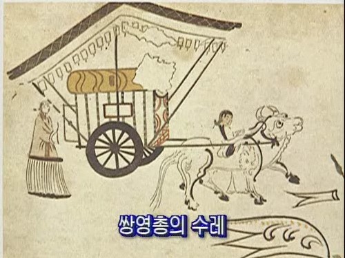 이 벽화에는 그 시대 고구려의 힘을 말해주는 흥미로운 단서가 숨어있습니다. 그동안 우리가 미처 눈여겨보지 못했던 것 그 단서는, 바로 이런 수렙니다. 당시에는 이런 수레를 주로 소가 끌었던 모양이군요. 이 벽과 덮개는 가죽과 비단으로 만들었고, 모양 자체도 조형미가 있는 아름다운 마차인데요. 그런데 이 바퀴가 상당히 큽니다. 지름이 1m가 넘구요, 둘레에는 이렇게 철로 테를 둘렀군요. 방사형이라고 부르는 이 바퀴살도 촘촘히 박힌, 상당히 발달된 형태의 수레인데요. 이런 바퀴를 단 수레라면, 상당히 먼거리까지 물건을 나르기도 쉬웠겠습니다. 그런데 1500년 전에 그려진 고구려고분벽화에는 이런 수레가 약 40여개나 등장합니다. 수레, 그 시대 고구려인들과 어떤 관계가 있었던 것일까요.