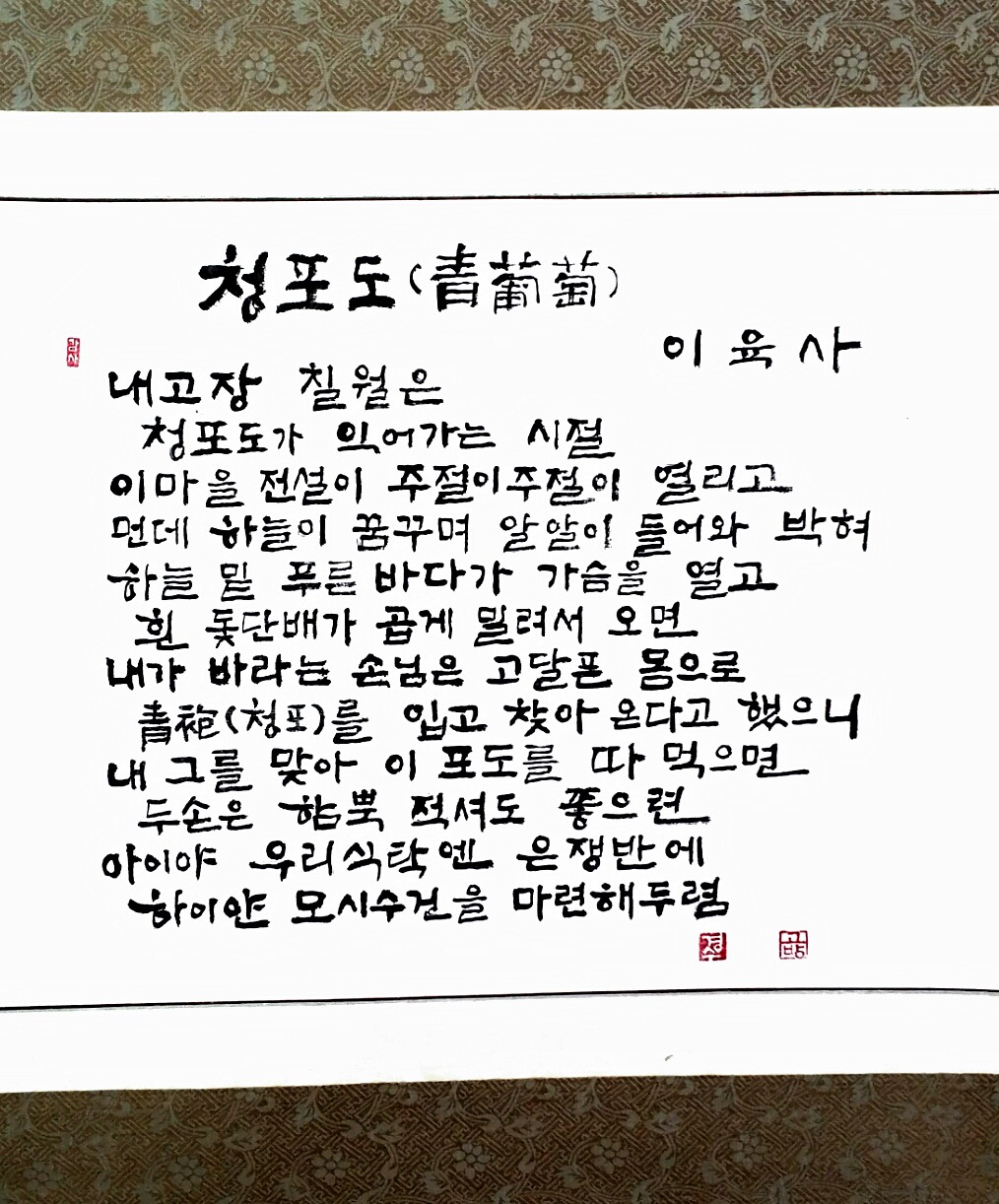 1연 : 청포도가 익어가는 칠월의 내 고장