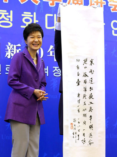 박대통령이 중국의 명문 칭화대(淸華大)를 방문해 연설을 마치자 칭화대측은 그 자리에서