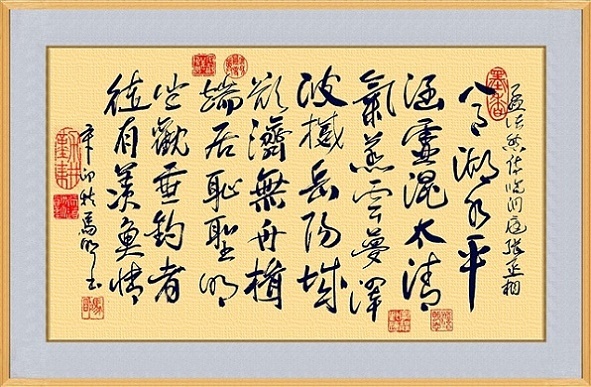 八月湖水平(팔월호수평),涵虛混太清(함허혼태청)。