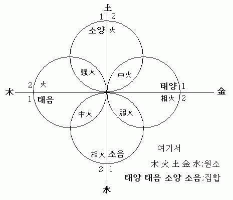 여기서 태양과 소음은 상화>>>화이고, 태음과 소양은 화>>>상화이므로