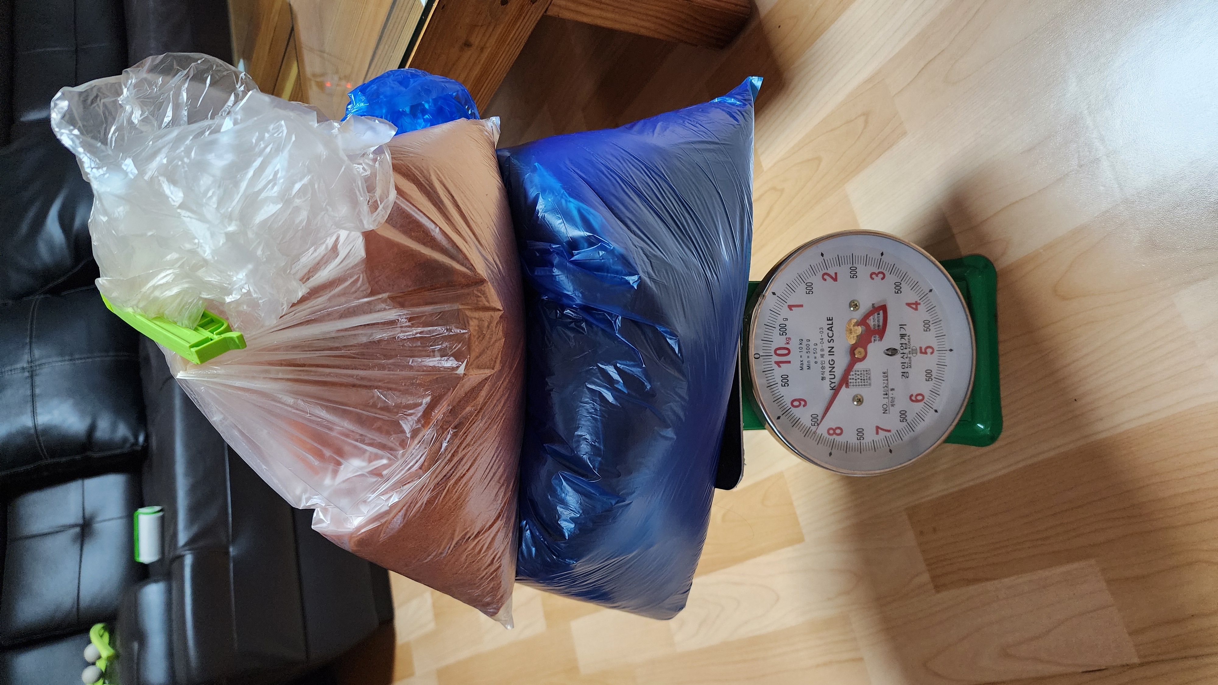 비닐 자루마다 쟁반무게 제하면 6.5kg정도~