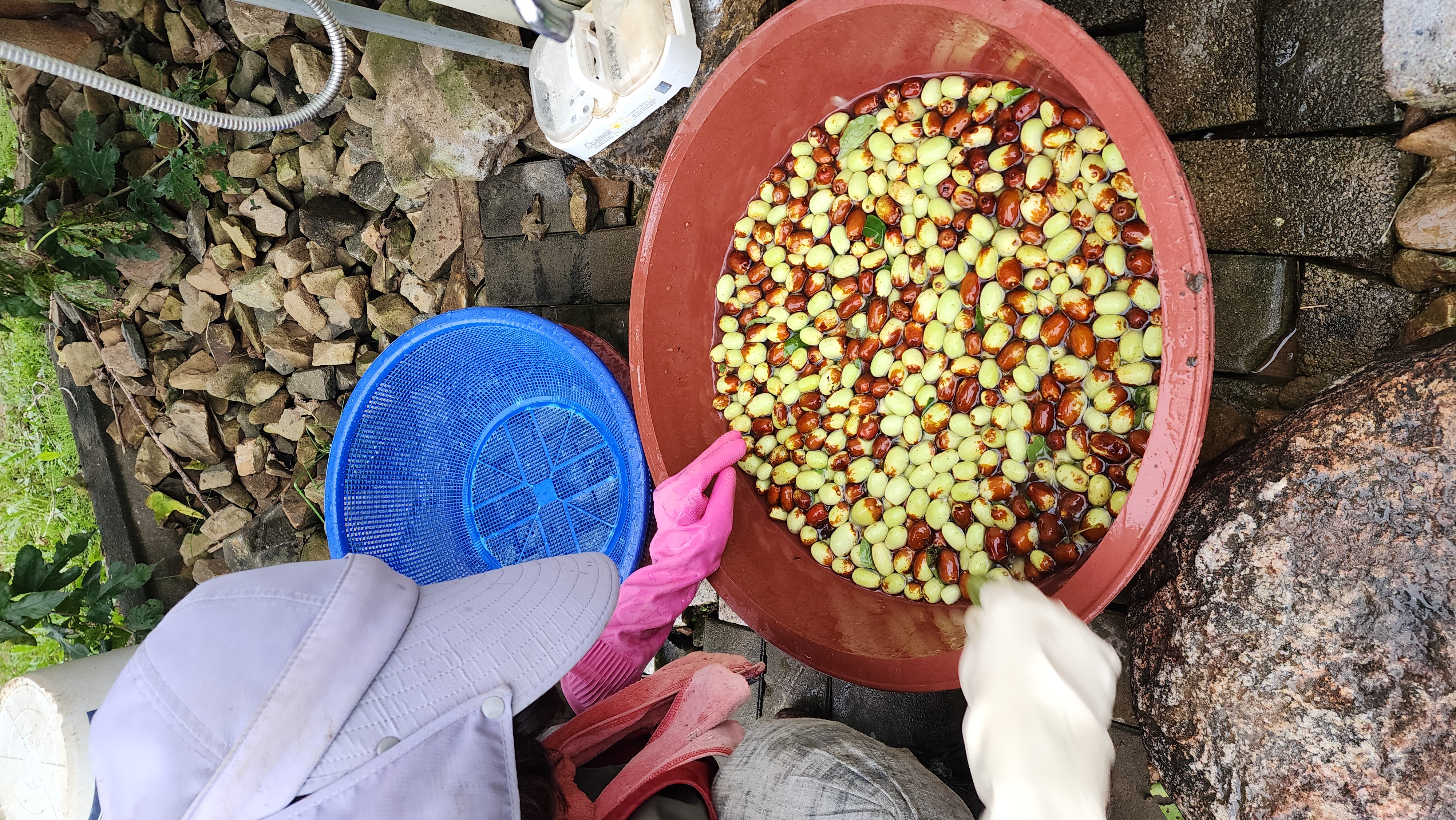 보통 대추수확은 장대같은 것으로 두들겨 떨어지면 줍는식인데~