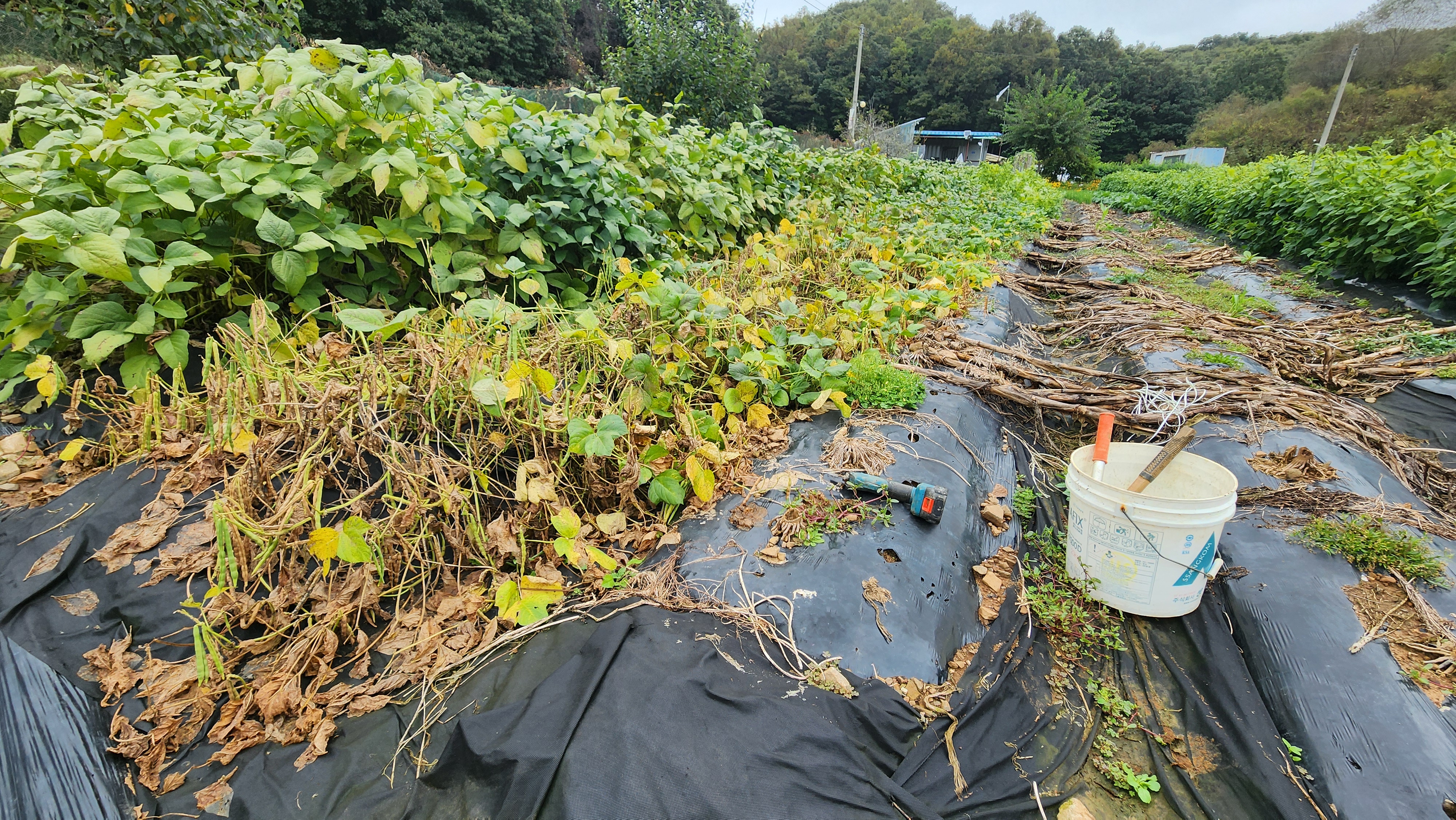 틈틈히 멀칭핀을 뽑으며 밭설거지 해 나간다..
