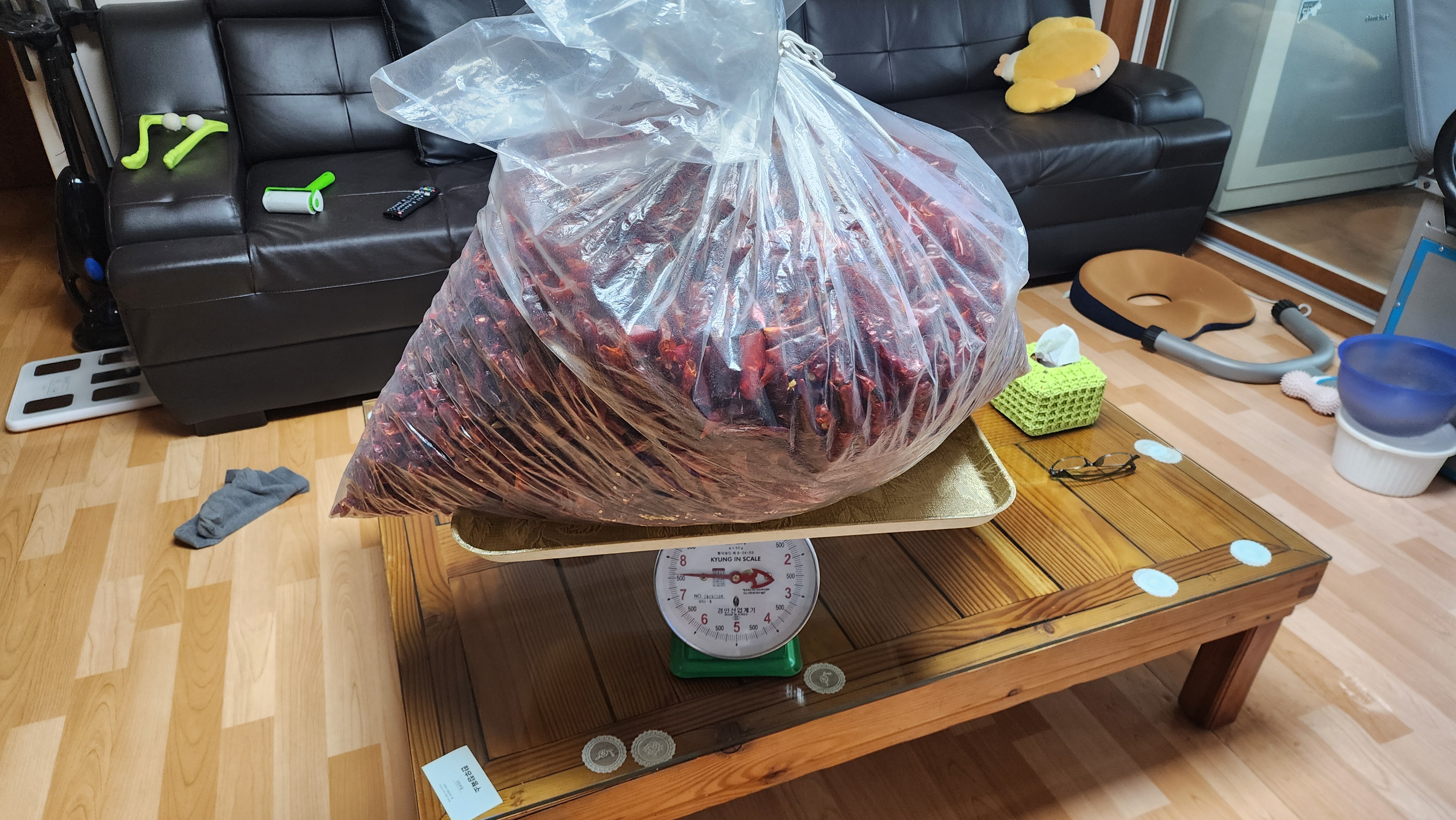 사라지는 고추씨가 대충 4.5kg 정도이고~