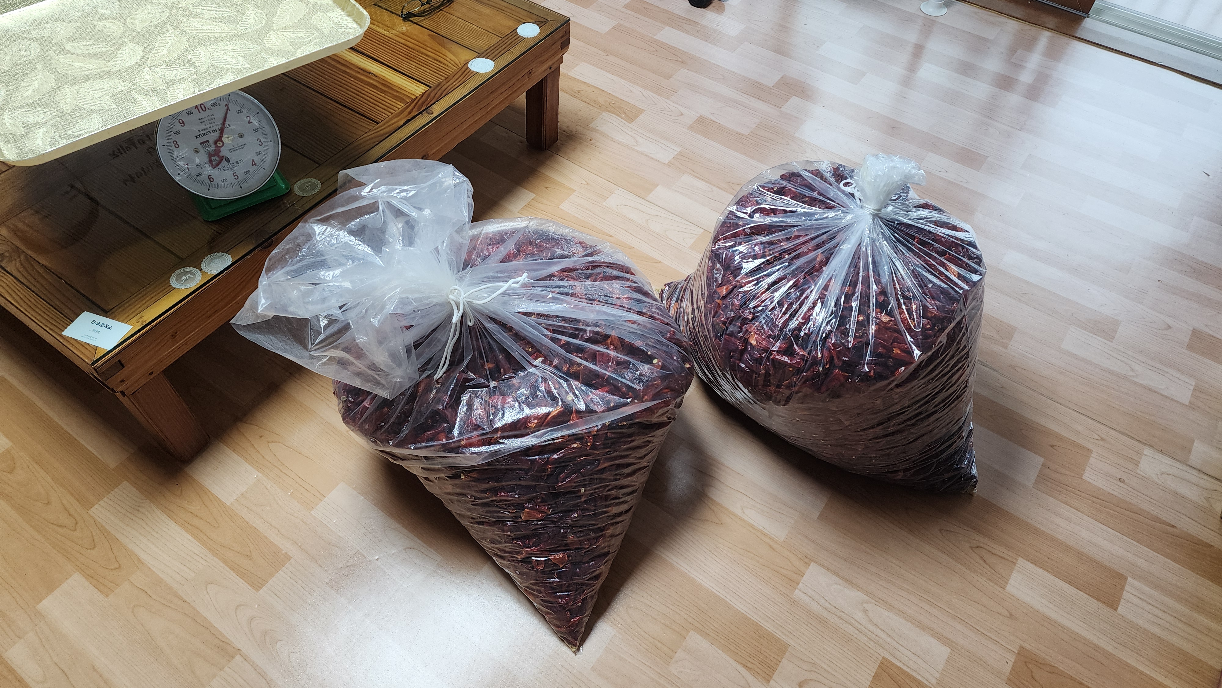 계산상 대략 1kg 건고추가 600g(1근) 고춧가루가 되는 것으로 여기면 됨..