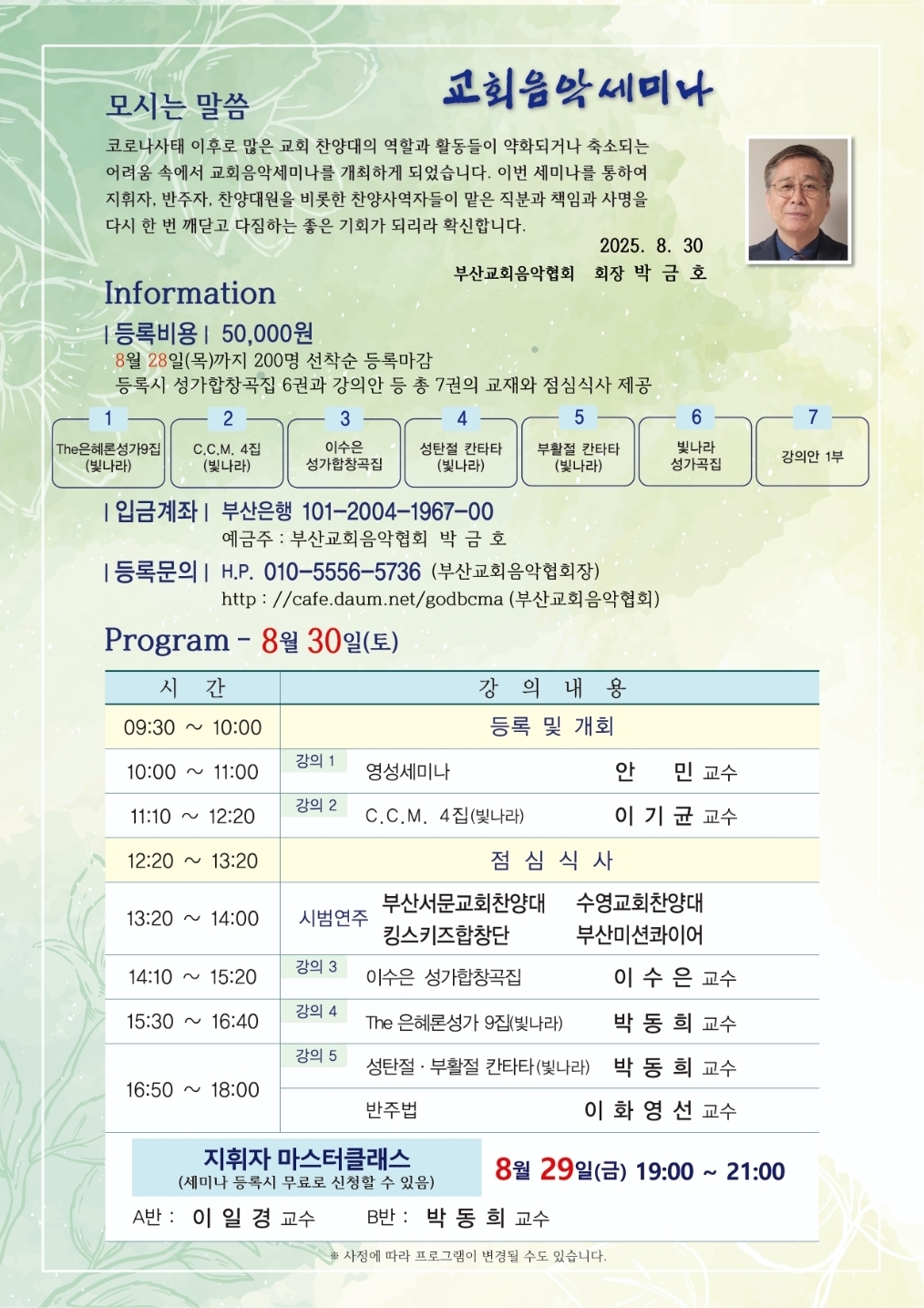 2025년 교회음악세미나 프로그램 및 강사진 프로필 작성자박효경|작성시간24.07.31|조회수146 목록 댓글 0 글자크기 작게가 글자크기 크게가 다음검색 현재 게시글 추가 기능 열기 북마크 공유하기 신고 센터로 신고 댓글 댓글 0 댓글쓰기 답글쓰기 댓글 리스트
