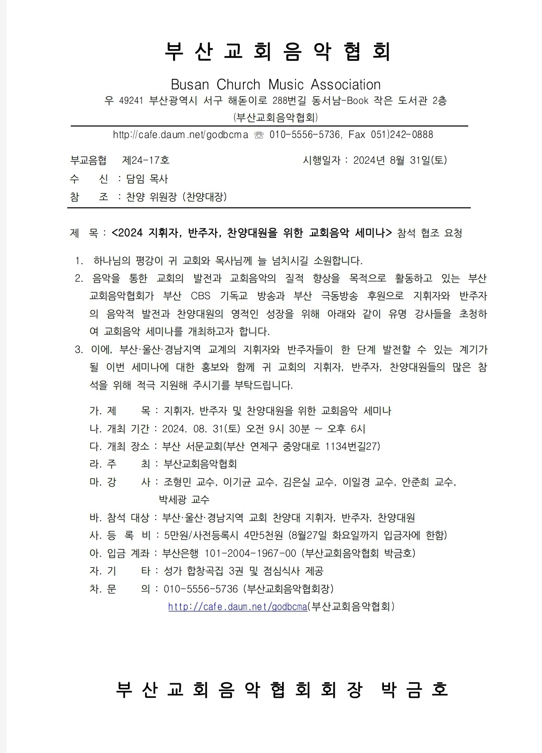 2024년 교회음악세미나 공문 작성자박효경|작성시간24.07.31|조회수37 목록 댓글 0 글자크기 작게가 글자크기 크게가 24년 부교협세미나 협조공문.hwp50.50KB 첨부파일첨부된 파일이 2개 있습니다. jpg 파일 1000000659.jpg 다운로드 hwp 파일 24년 부교협세미나 협조공문.hwp 다운로드 다음검색 현재 게시글 추가 기능 열기 북마크 공유하기 신고 센터로 신고 댓글 댓글 0 댓글쓰기 답글쓰기 댓글 리스트