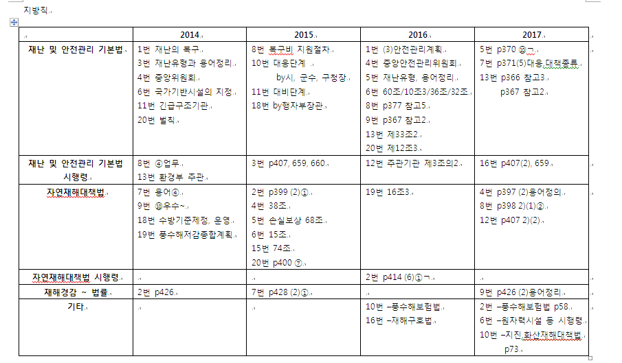 아래는 2014년도 기출부터 법령을 항목별로 정리한건데요. 일단 지방직만 올립니다.