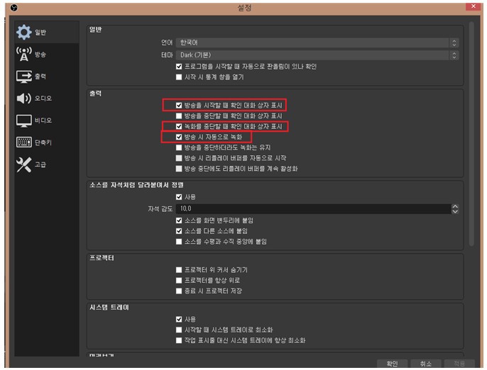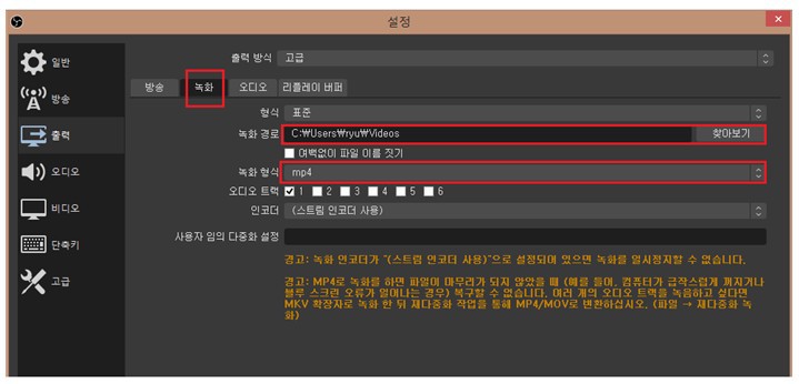 출력- 녹화에서 녹화경로는 원하는 곳으로 지정