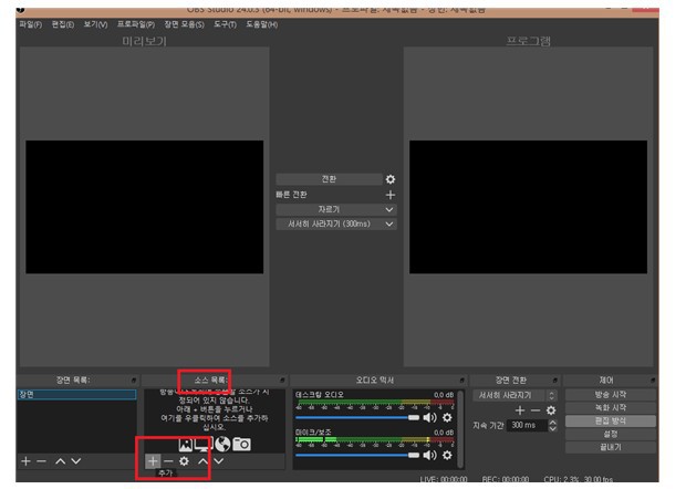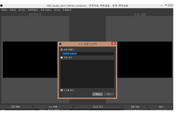 obs 스튜디오에서 소스목록에서- +클릭하시면
