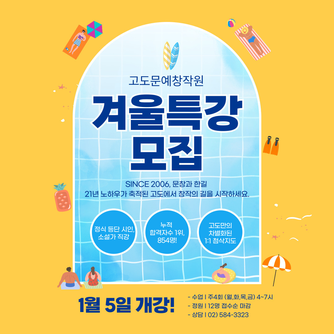 - 신춘문예, 문학동네 등으로 등단한 고도창작원 출신 시인, 소설가가 직접 지도