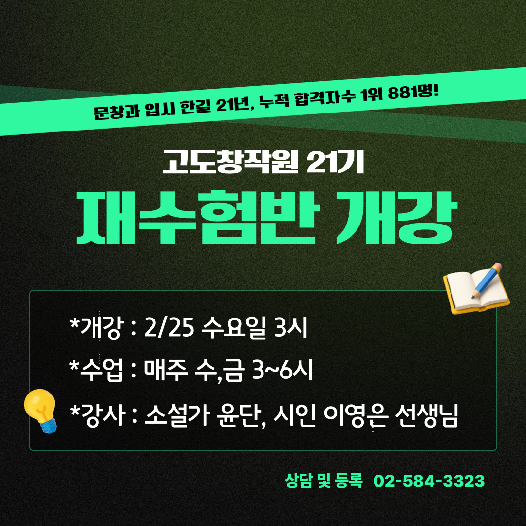 ★ 고도창작원 21기 재수험반 개강 안내 ★