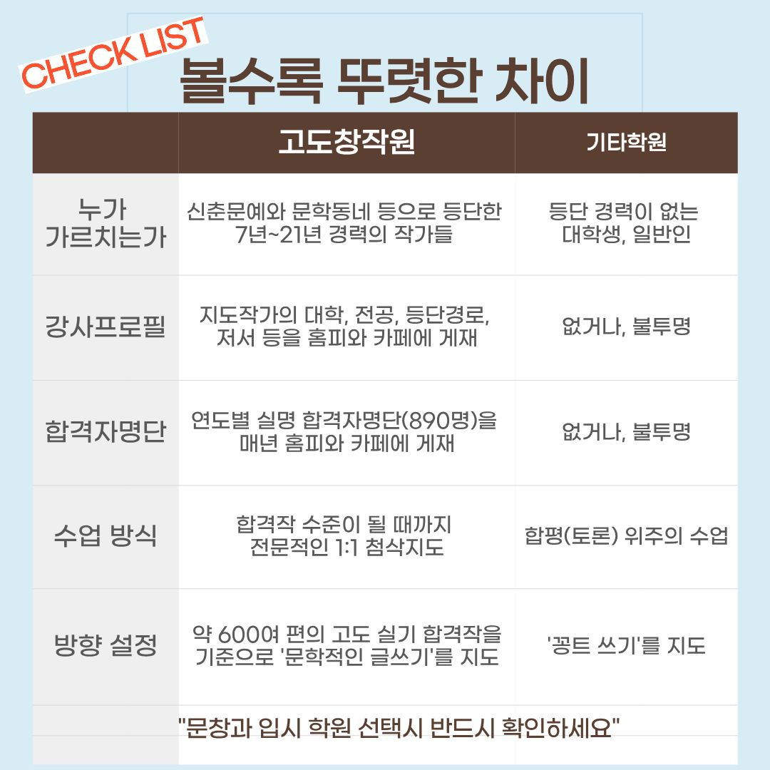 ● 지난 21년간 문창과 입시 한길 – 고도와 함께라면 두 번의 실패는 없습니다.