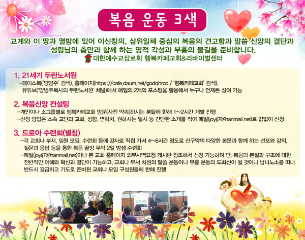 ※혹 여러 이유로 유사한 관점과 방향의 글과 내용들이 필요한 분들은 페이스북('양범주' 검색), 홈페이지(Daum검색에서 '행복카페교회' 들어가서 '리바이벌 센터' 게시판), 유튜브('양범주목사의 두란노서원' 검색)에 대략 2년 정도 분량이 잘 보관되어 있고, 그 누구든, 그 어디서든, 그 어느 부분이든 편하게 이용하실 수 있게 되어 있으니 활용 및 참조해 주시며..