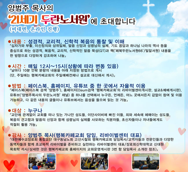 양범주목사의 '21세기 두란노서원'에 초대합니다..
