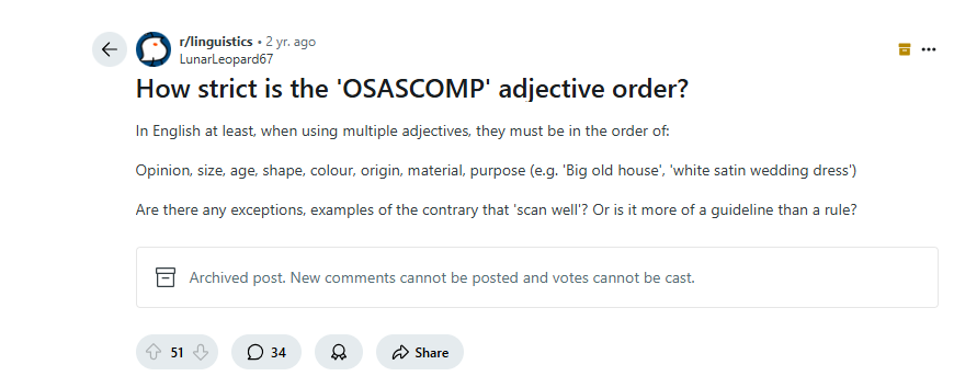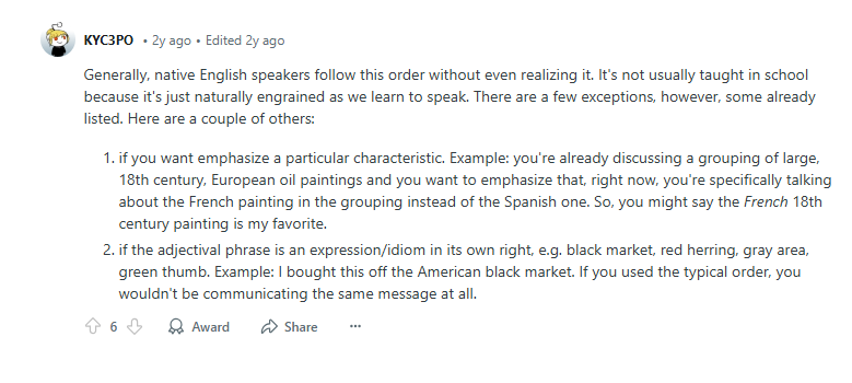 order of adjectives 작성자다람쥐|작성시간25.04.30|조회수14 목록 댓글 0 글자크기 작게가 글자크기 크게가 \ 다음검색 현재 게시글 추가 기능 열기 북마크 공유하기 신고 센터로 신고 댓글 댓글 0 댓글쓰기 답글쓰기 댓글 리스트