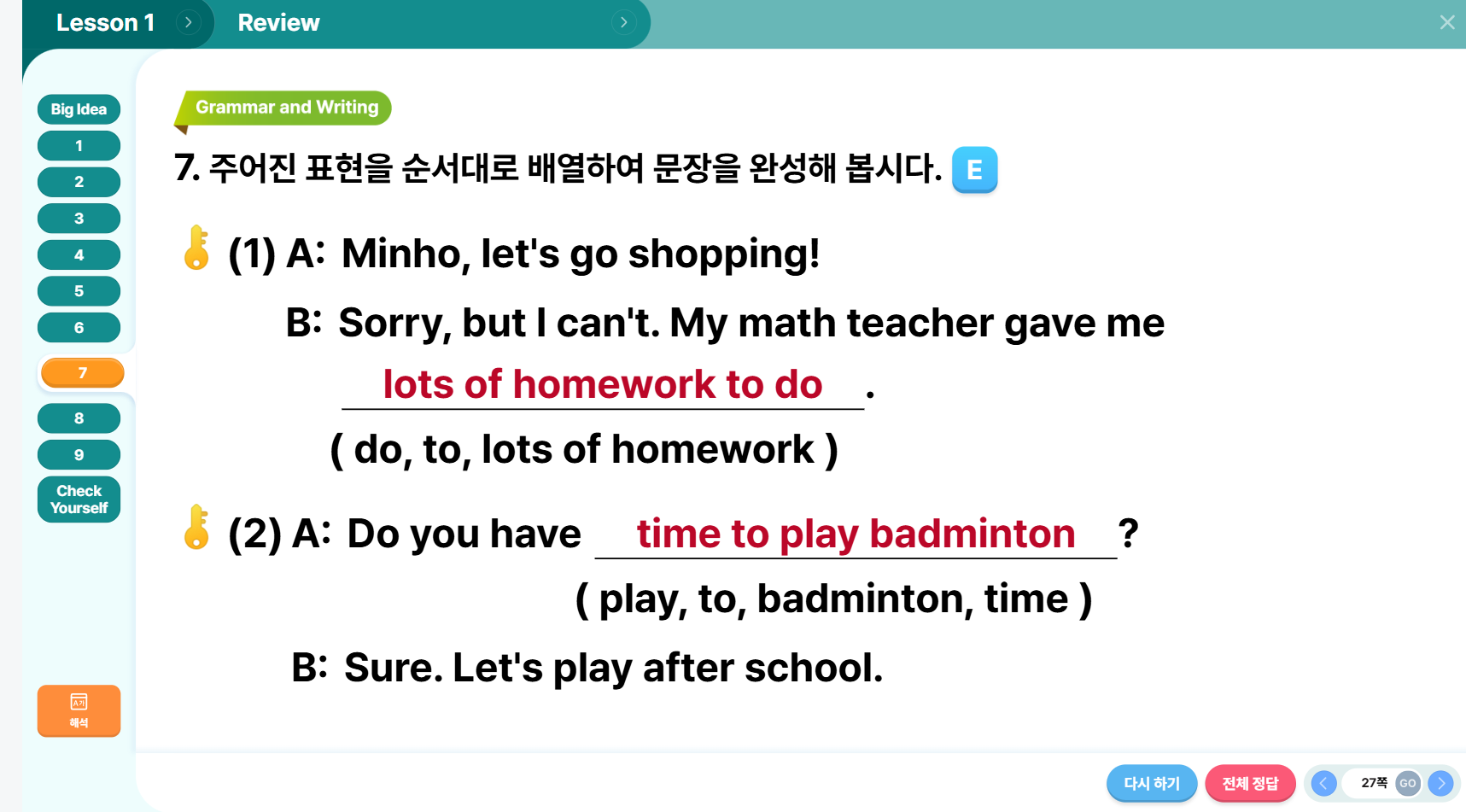(교과서 p. 22 A, p. 27 7번, 학습지 p. 7~8)