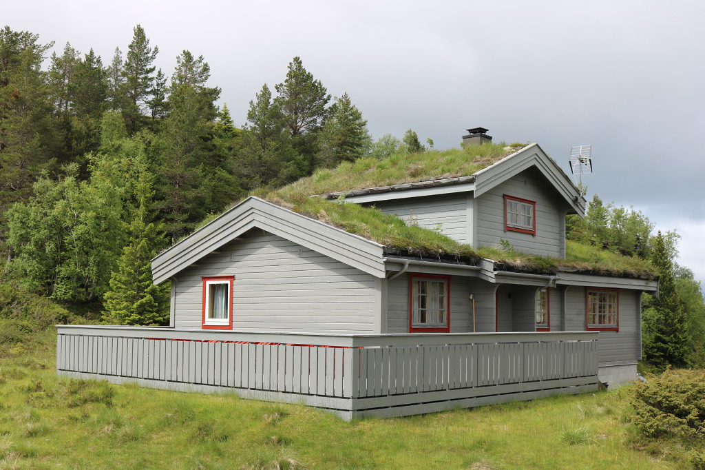 ▼ 한참을 달리던 버스가 이름을 알 수 없는 어느 언덕위에 멈춰 선다. 눈요기를 겸한 잠깐의 휴식을 위해서이다. 산자락을 따라 리프트가 설치되어 있는 걸로 보아 스키장이 이 부근에 있지 않나 싶다. 고갯마루에는 반듯하게 지어진 집 한 채가 있다. 이곳 노르웨이 특유의 지붕, 즉 기와 대신에 잔디를 덮어놓은 독특한 지붕을 갖고 있는 집이다. 저런 지붕으로 꾸며진 데는 그만한 이유가 있다고 한다. 보온(保溫)·보냉(保冷)의 기능뿐만 아니라 습도(濕度) 조절에도 큰 효과가 있기 때문이란다. 이는 길고도 추운 겨울철과 일 년의 반 이상이 강우일(降雨日)인 노르웨이의 기후에 적합하다는 얘기가 된다.