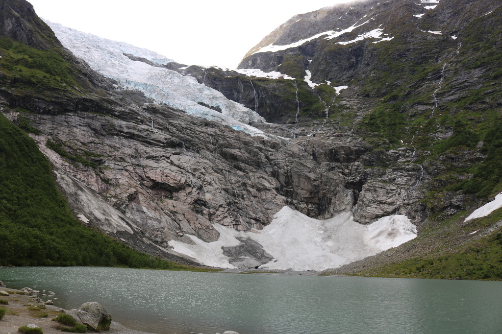 ▼ 빙하는 생각했던 것 보다는 그 규모가 훨씬 작다. 근원이 되는 ‘요스테달 빙원(Jostedalsbreen)’은 산 너머에 있는데, 직접 올라가보는 것은 불가하단다. 그렇다면 ‘뵈이야빙하’는 맛보기인 셈이다. 잠깐! 우리나라 말에 ‘뵈여야’라는 표현이 있다. 누구누구에게 보여준다는 뜻인데, 저 빙하의 이름인 ‘뵈이야’와 발음이 비슷하지 않는가? 원 빙하는 꼭꼭 숨겨놓고 맛보기만 보여준다고 해서 그런 이름이 붙었을 지도 모르겠다. 요즘 애들은 이런 걸 보고 ‘아재 개그(gag)’라고 한다지?