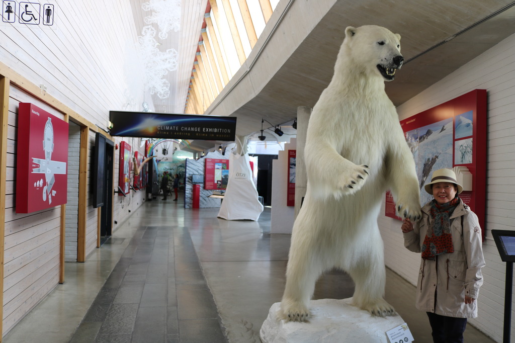 ▼ 이젠 빙하와 관련된 자료들이 전시되고 있는 공간으로 들어가 보자. 입구는 포효(咆哮)하고 있는 커다란 백곰이 지키고 있다. 그래, 현존하는 동물 가운데서는 빙하와 가장 밀접한 동물일 것이다. 그래선지 유독 이 박제품 앞에서 포즈를 잡는 사람들이 많다.