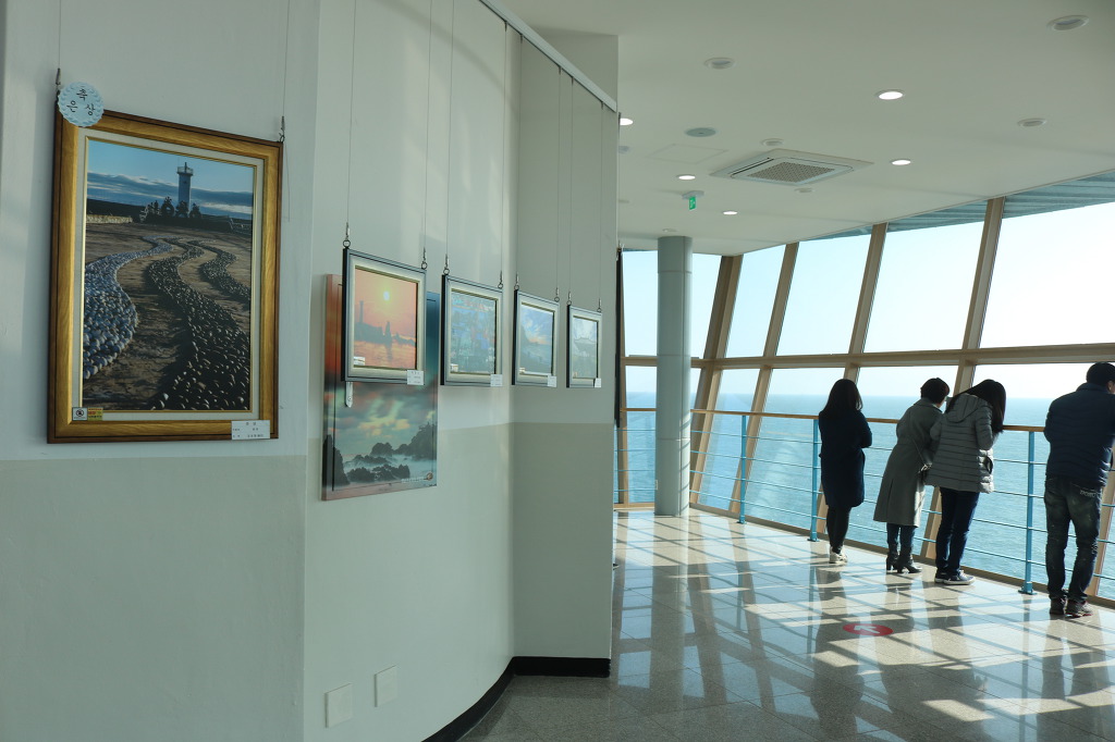 ▼ 전망대에는 작품사진들이 전시되고 있다. 지난 달엔가 경주바다 100리길의 아름다운 해양 자연환경과 해안에 숨어있는 다양한 이야기를 주제로 한 ‘경주해요!, 전국 사진공모전’이 열렸다고 하더니 입상작들을 전시하고 있나 보다.