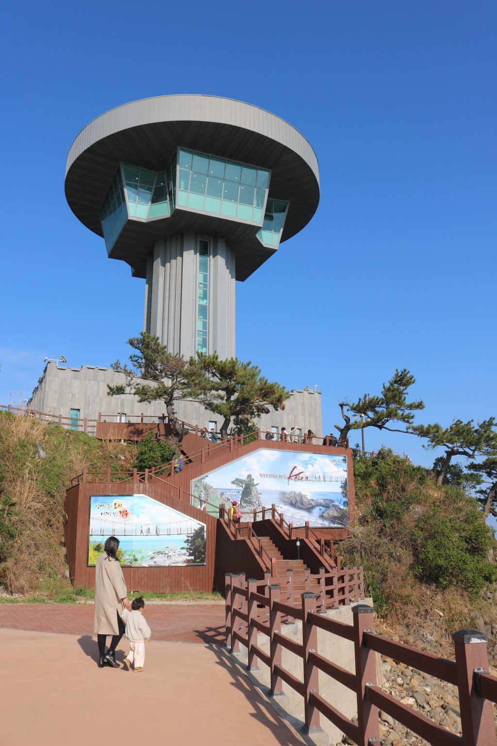 ▼ 경주 해양관광의 랜드마크라 할 수 있는 ‘주상절리 전망대’는 2017년 10월에 문을 열었다. 높이 35m의 4층 전망타워를 비롯해 관람객 편의시설을 갖춘 조망공원으로 꾸며졌다. 연중 무휴로 운영하고 있는 타워에 오르면 자연이 연출한 조각품이라 일컬어지는 천혜의 비경을 자랑하는 주상절리를 한눈에 굽어 볼 수 있다. 특히 이곳 양남주상절리의 꽃이라 할 수 있는 ‘부채꼴 주상절리’가 발아래에 펼쳐지는데 가히 장관이라 하겠다. 하지만 사진을 찍고 싶다면 타워를 내려갈 것을 권하고 싶다. 타워는 유리로 막혀있기 때문이다.