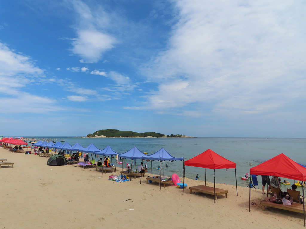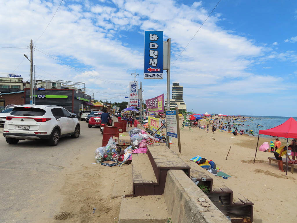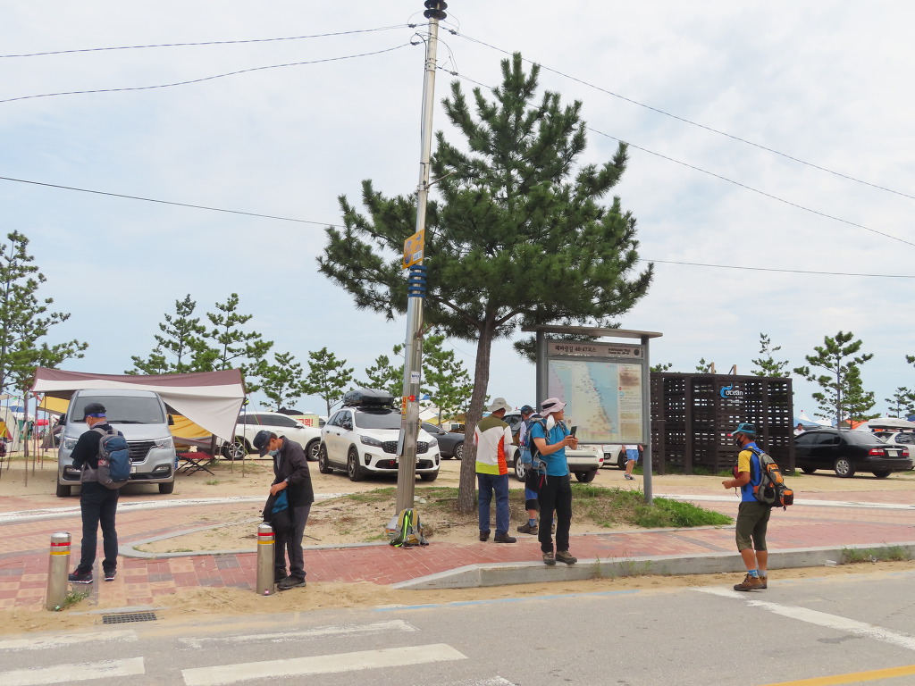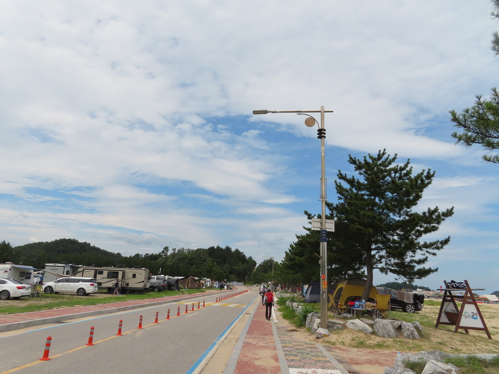 ▼ 해안도로(삼포해변길)을 따라 북쪽으로 걸으면서 트레킹이 시작된다. 삼포해변(三浦海邊)을 오른편 옆구리에 꿰차고 걷는다고 보면 되겠다. 해안도로를 사이에 둔 왼편 공터에는 카라반이 가득하다. 작년 여름, TV JTBC에서 방영한바 있는 ‘캠핑클럽’이 꽤나 인기를 끌었다더니 사실이었던 모양이다. 저렇게도 많은 카라반 가운데 비어있는 게 하나도 없으니 말이다. 하긴 평생 캠핑 한번 떠나보지 않았던 나까지도 따라하고 싶었을 정도로 1세대 아이돌 ‘핑클’의 멤버들이 보여주던 캠핑에서의 소소한 일상은 재미있었다.