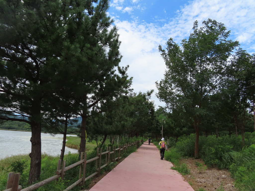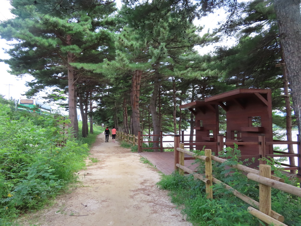 ▼ 탐방로는 이제 송지호의 호반을 따라 나있다. 사색하며 걷기에 딱 좋은 구간이다. 그 길은 나는 사랑하는 사람과 함께 걷는다. 그동안 가슴 속 깊이 묻어두었던 이야기를 두런두런 나눌 만큼 시간은 넉넉했다. 덕분에 시간이 흐를수록 오가는 얘기는 친밀해졌고 사랑은 한층 더 충만하고 견고해졌다. 이런 게 바로 해파랑길을 걷는 참맛이 아닐까 싶다.