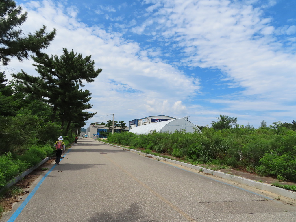 ▼ 해변이 끝나갈 즈음 만나게 되는 정자 앞에서 탐방로는 왼편으로 방향을 튼다. 곧이어 '공현진 경로당' 옆(이정표 : 가진항 1.4㎞/ 공현진항 0.5㎞)에서는 오른편으로 방향을 튼다. 이후로는 ‘가진해변길’을 따라 걸으면 된다. 탐방로를 따로 내놓지 않았으므로 지나다니는 차량에 주의를 기울여가며 걸어야 하는 구간이다.
