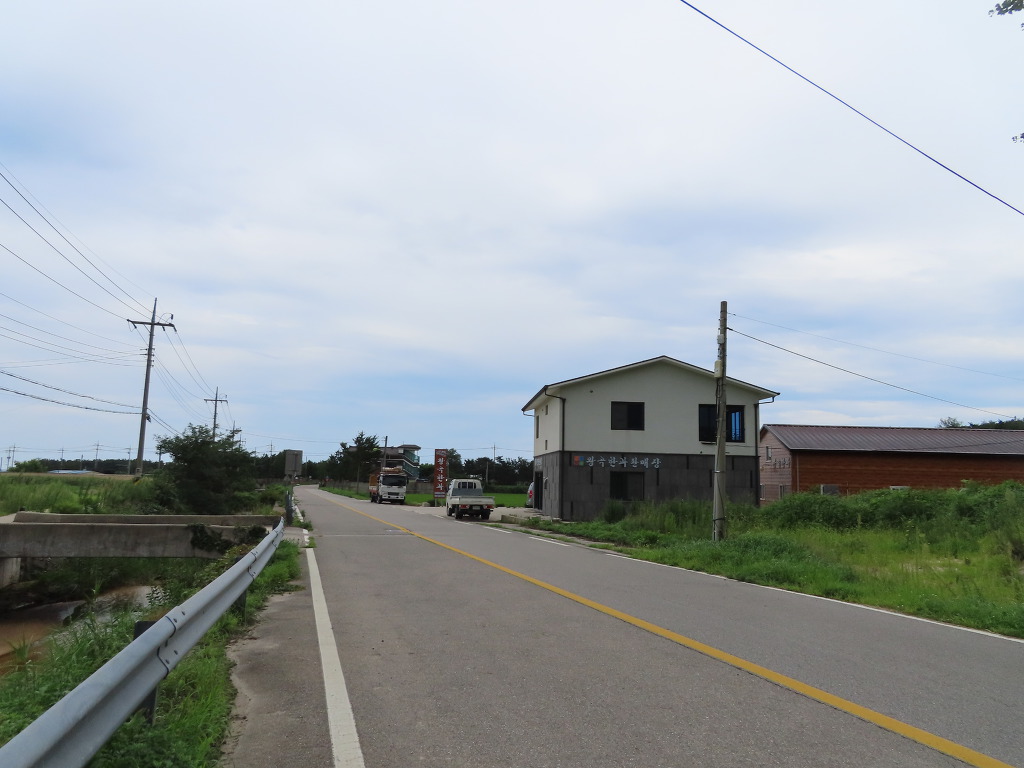 ▼ 저잣거리를 나서서 7~8분쯤 지나면 ‘왕곡한과 판매점’, 계속해서 5분쯤 더 걸으면 ‘왕곡마을입구 삼거리(이정표 : 공현진1리 해변 0.6㎞/ 왕곡마을 저잣거리 0.7㎞)’가 나온다. 해파랑길은 이곳에서 왼편으로 방향을 튼 다음 7번 국도를 따라 3분쯤 더 걸으라고 한다. 자동차가 씽씽 달리는 국도의 위를 말이다. 그러다가 공현진해변 입구 버스정류장 앞(이정표 : 공현진해변 0,3㎞)에서 횡단보도를 건너라는 것이다. 아직도 이 구간은 이해가 가지 않는다. 명색이 해파랑길인데 탐방객들을 이처럼 위험한 곳으로 인도할 리가 없기 때문이다. 어쩌면 왕곡마을 입구 삼거리에서 '공현진교' 아래로 인도하고 있었을지도 모르겠다.