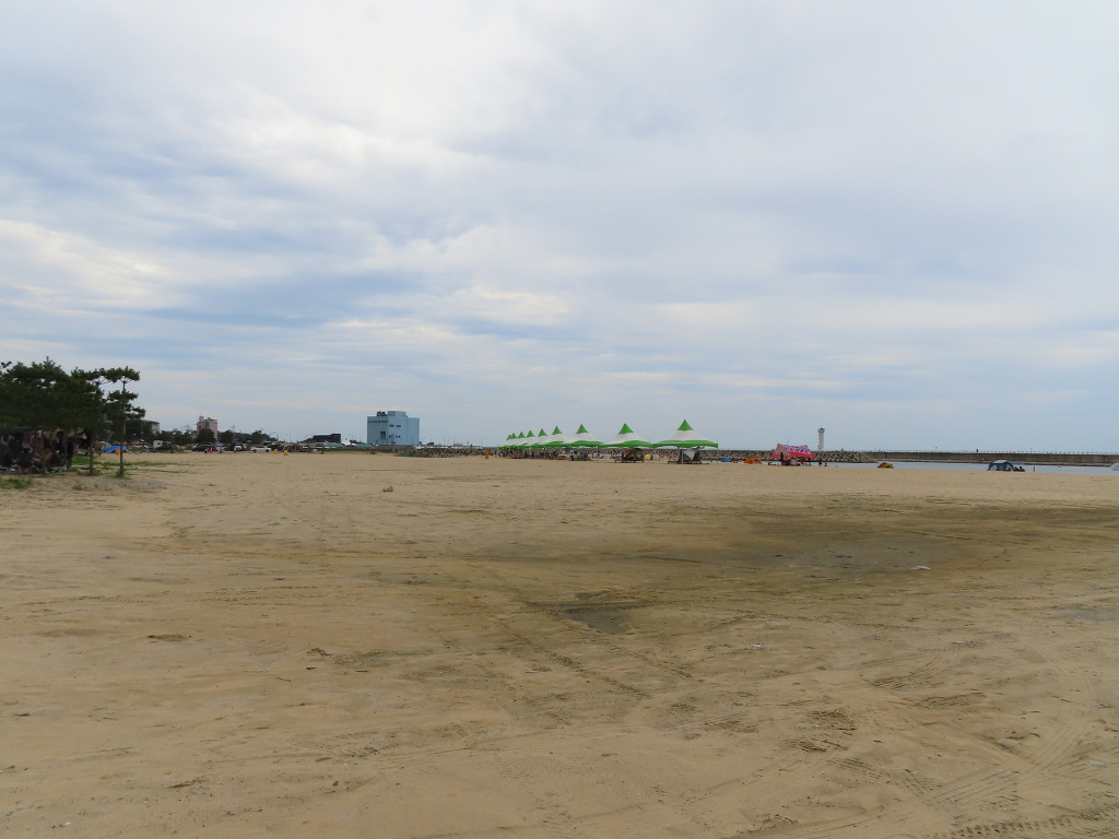 ▼ 횡단보도를 건넌 다음에는 ‘공현진해변길’을 따른다. 이어서 5분쯤 더 걸으니 공현진 해변(公峴津海邊)이 드넓게 펼쳐지면서 공현진항 등대가 멀리 보인다. 아니 정확히는 ‘공현진1리 해변’이다. 공현진항을 가운데에 놓고 남쪽의 공현진1리와 북쪽의 공현진 2리 해수욕장으로 분리되어 있기 때문이다. 그나저나 널따란 모래사장은 텅 비어있다시피 하다. 수심이 얕은 ‘공현진2리 해수욕장’이 더 인기가 있다던 얘기가 사실이었나 보다. 아니면 이곳 역시 코로나19의 여파일 것이고 말이다. 참! 이곳 공현진1리 해변은 ‘개그 테마해변’이라 불리기도 한다. SBS 공채개그맨들이 한때 이곳에서 라디오 생방송과 공연 등을 진행하면서 얻어낸 별칭이라고 한다.
