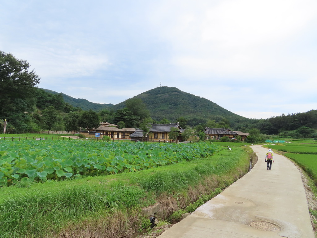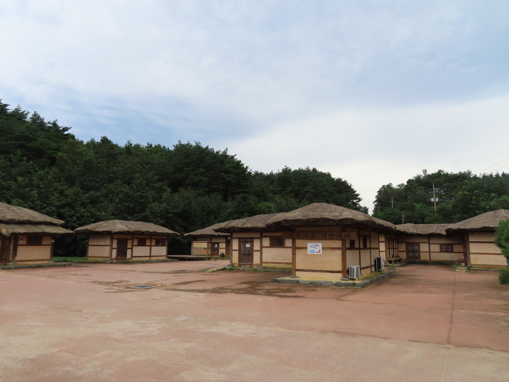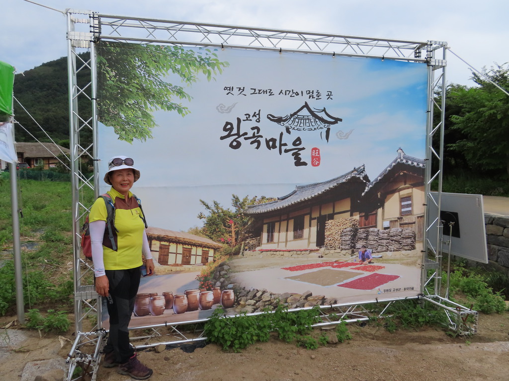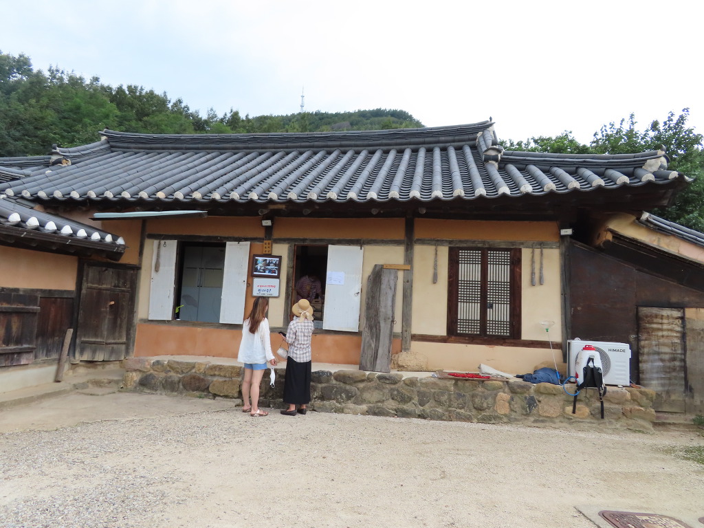 ▼ 20분 남짓 마을을 둘러보다 마을회관 근처 삼거리로 되돌아와 이번에는 해파랑길을 따른다. 이어서 ‘작은 상나말집’과 양근 함씨 4대의 효행을 기리는 효자각을 기웃거리다보면 길은 어느덧 마을 입구에 이르게 된다. 마을을 지키는 장승과 마을의 역사를 적은 안내판을 세워 옛 것을 그대로 보존하고 있는 왕곡마을에 들어왔음을 알린다. 이곳에서 두백산 숲길의 들머리를 겸하는 고갯마루를 넘으면 왕곡마을회관에서 8분 거리에 있는 ‘저잣거리’이다. 가게가 죽 늘어서 있는 길거리라는 뜻에 맞게 향토식당과 왕곡한과, 전통체험장 등이 들어서 있다는데 문이 굳게 닫혀있어서 이용할 수는 없었다.